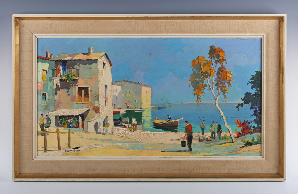 Cecil Rochfort Doyly-John (British 1906-1993) - 'Cassis, near St Tropez, South of France', oil on canvas, signed lower left, inscribed verso, 41cm x 76cm, within a painted and linen-lined frame.