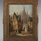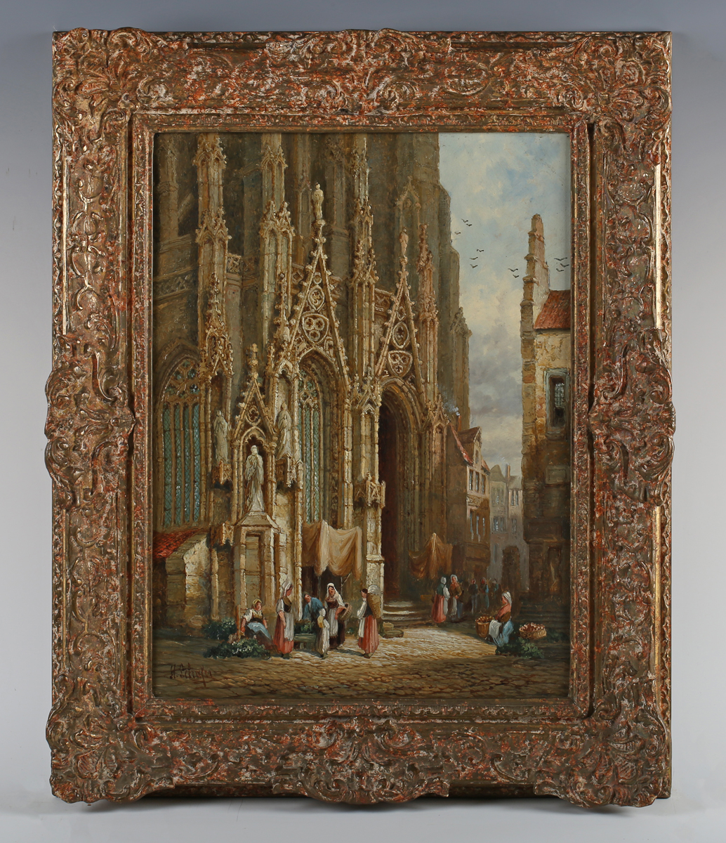 Henry Schafer (German 1833-1916) - ‘Porch at St Marlou, Rouen, Normandy’; 'Chartres', a pair, oil on canvas, both signed, one lower left, one lower right, one signed and inscribed verso, each 41cm x 30cm, within swept composition frames (2). Provenance: Stacy-Marks.