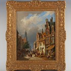 Cornelis Christian Dommersen (Dutch 1842-1928) - Dutch town scene with figures, oil on canvas, signed and dated 1873 lower left, 30.5cm x 38cm, within a swept gilt composition frame. Provenance: Stacy-Marks.