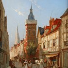 William Dommersen (British 1859-1927) - 'Rue de la Tour, Rouen', oil on panel, signed and dated 1889 lower right, 45.5cm x 35cm, within a pierced gilt composition frame. Provenance: Stacy-Marks.