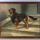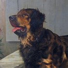 Blanche Polonceau (French 1846-1914) - Study of an English Shepherd dog, oil on canvas, signed and dated 1909 lower right, 114.5cm x 146cm, within a stained wood frame.