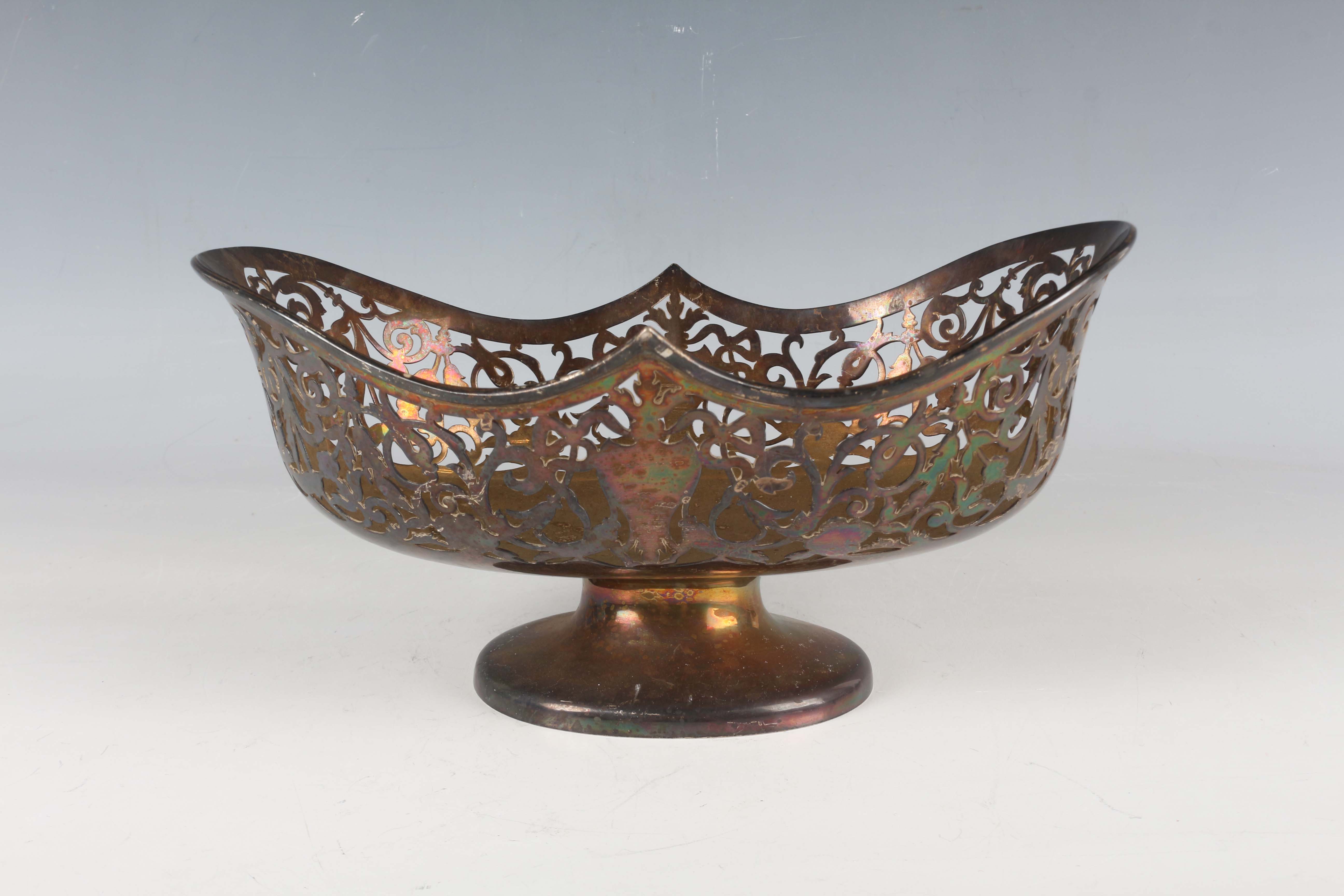 An Edwardian silver oval basket, the sides pierced with scrolls beneath a shaped rim, on an oval foot, Birmingham 1907 by Davis, Moss & Co, weight 353.1g, length 22.2cm, height 11.5cm.