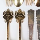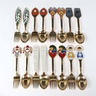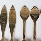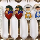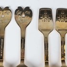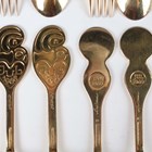 Eight pairs of Danish sterling silver gilt and enamelled Christmas forks and spoons by Anton Michelsen, Copenhagen, comprising 1952, 1956 and 1968-1973, total weight 723.9g, length 16cm.