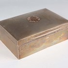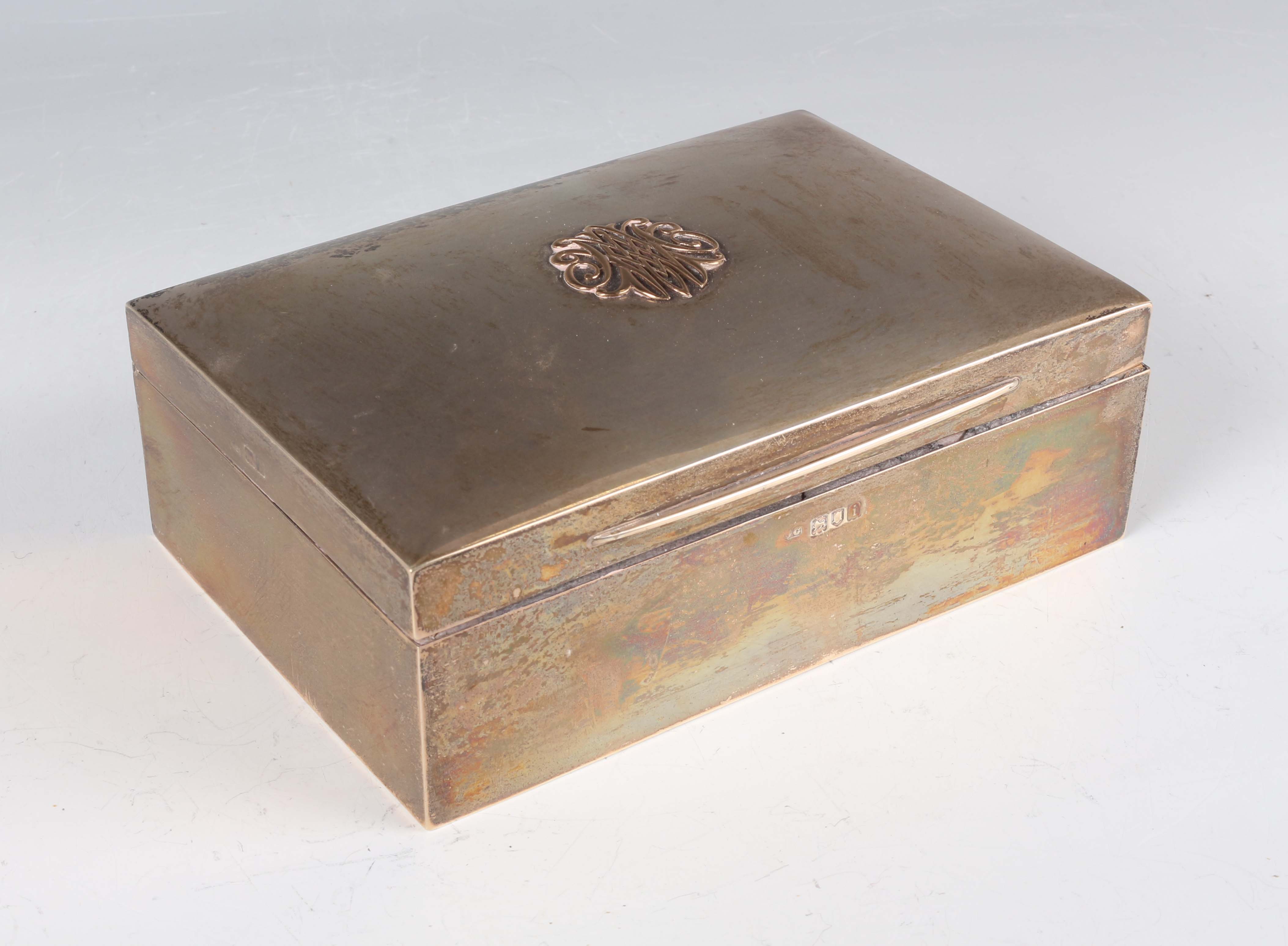 An Edwardian silver cigarette box, the hinged lid applied with a monogram, London 1904, length 15.4cm.