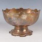 A George V silver circular rose bowl with castellated rim, on a similarly decorated circular foot, Birmingham 1913 by Elkington & Co Ltd, weight 387.6g, height 11.5cm.