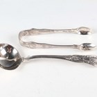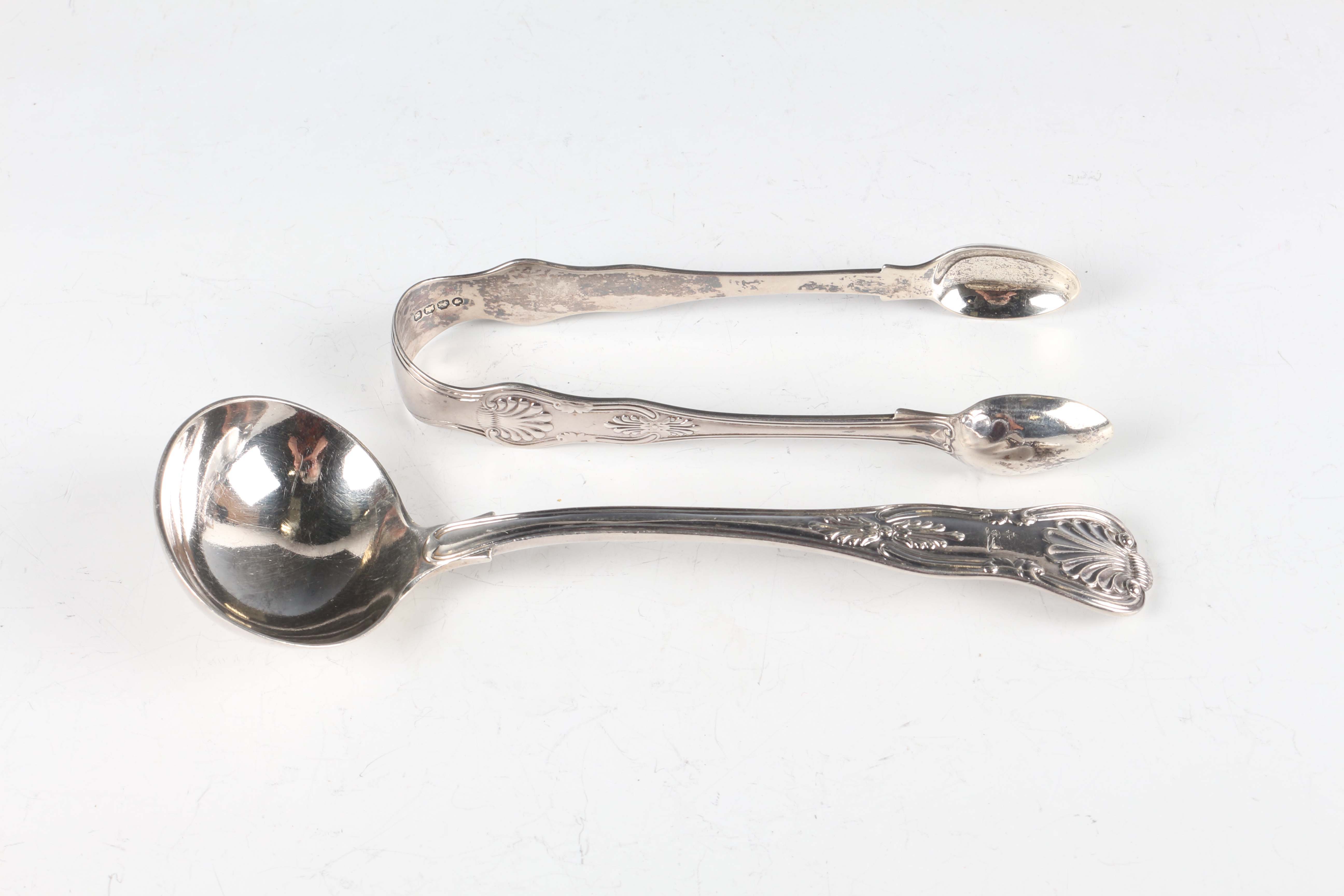 A Victorian silver King's pattern sauce ladle and matching pair of sugar tongs, Exeter 1861, by Josiah Williams & Co, weight 171.5g, length of sauce ladle 19.6cm.