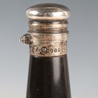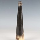 A Victorian silver mounted horn stirrup flask with rotating hinged lid, London 1875 by Thomas Johnson I, height 24cm.