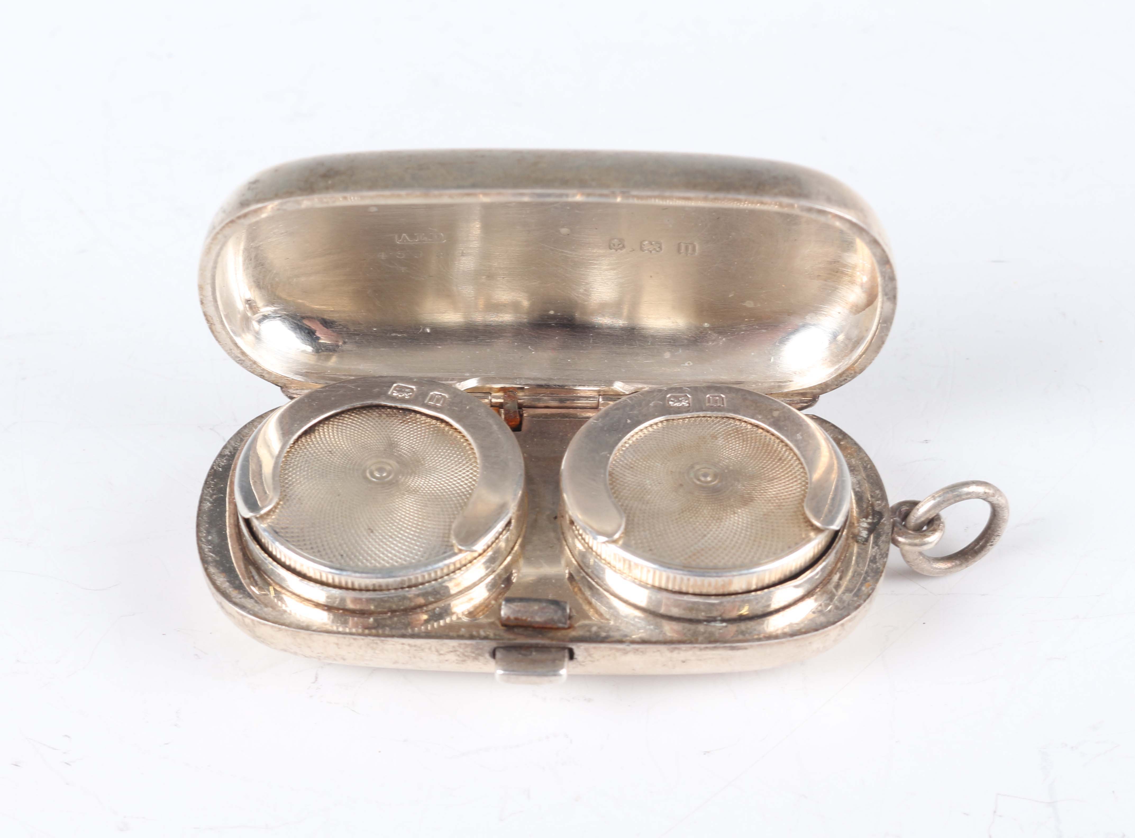 A George V silver twin-sovereign case, the hinged lid initial engraved, Birmingham 1912 by Aaron Lufkin Dennison, weight 41.7g, length 8.7cm.