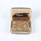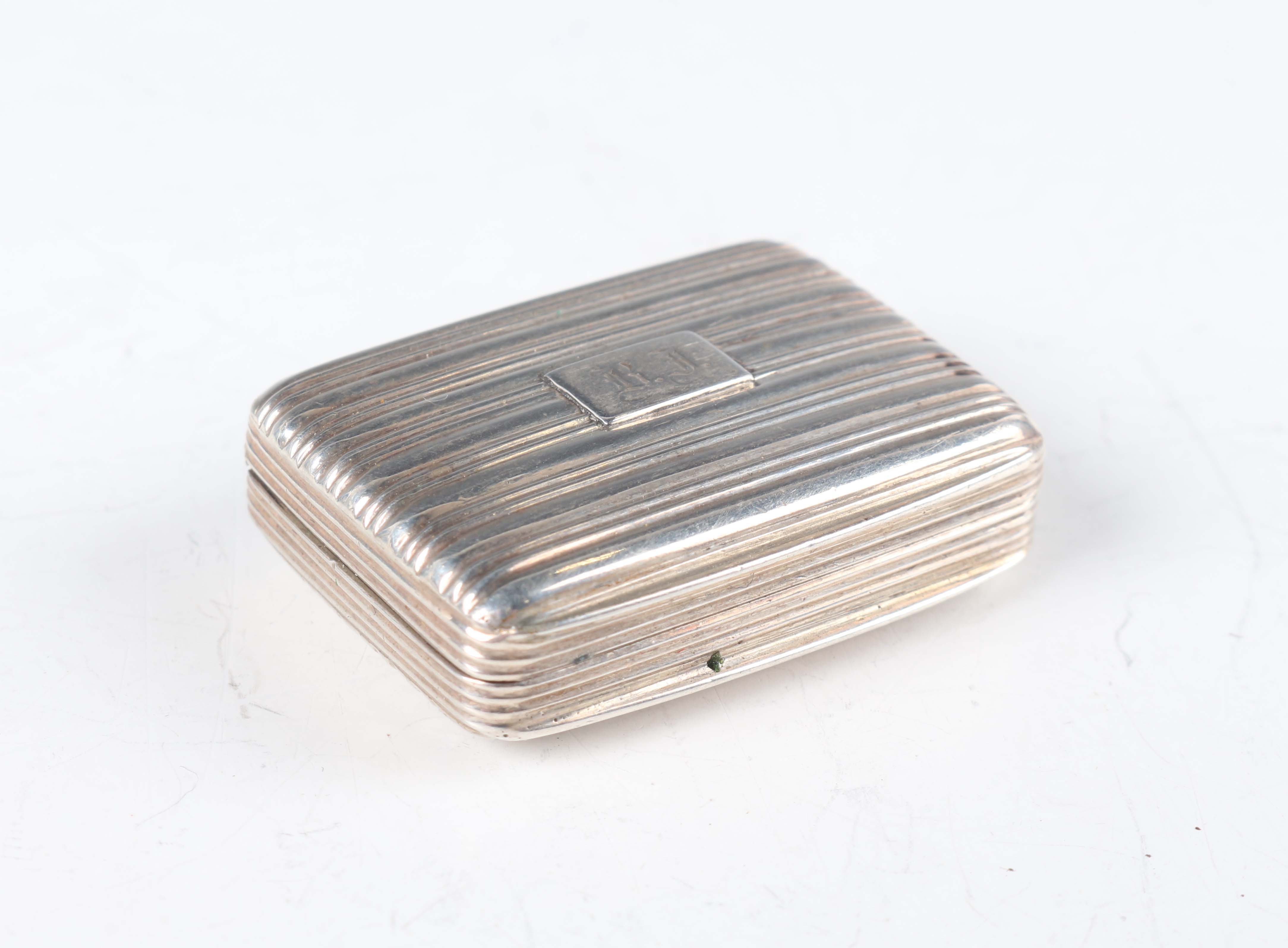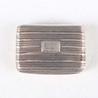 A William IV silver rectangular vinaigrette with banded decoration, the gilt interior with pierced and engraved hinged grille, Birmingham 1833 by Nathaniel Mills, weight 20g, length 3.6cm.