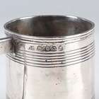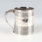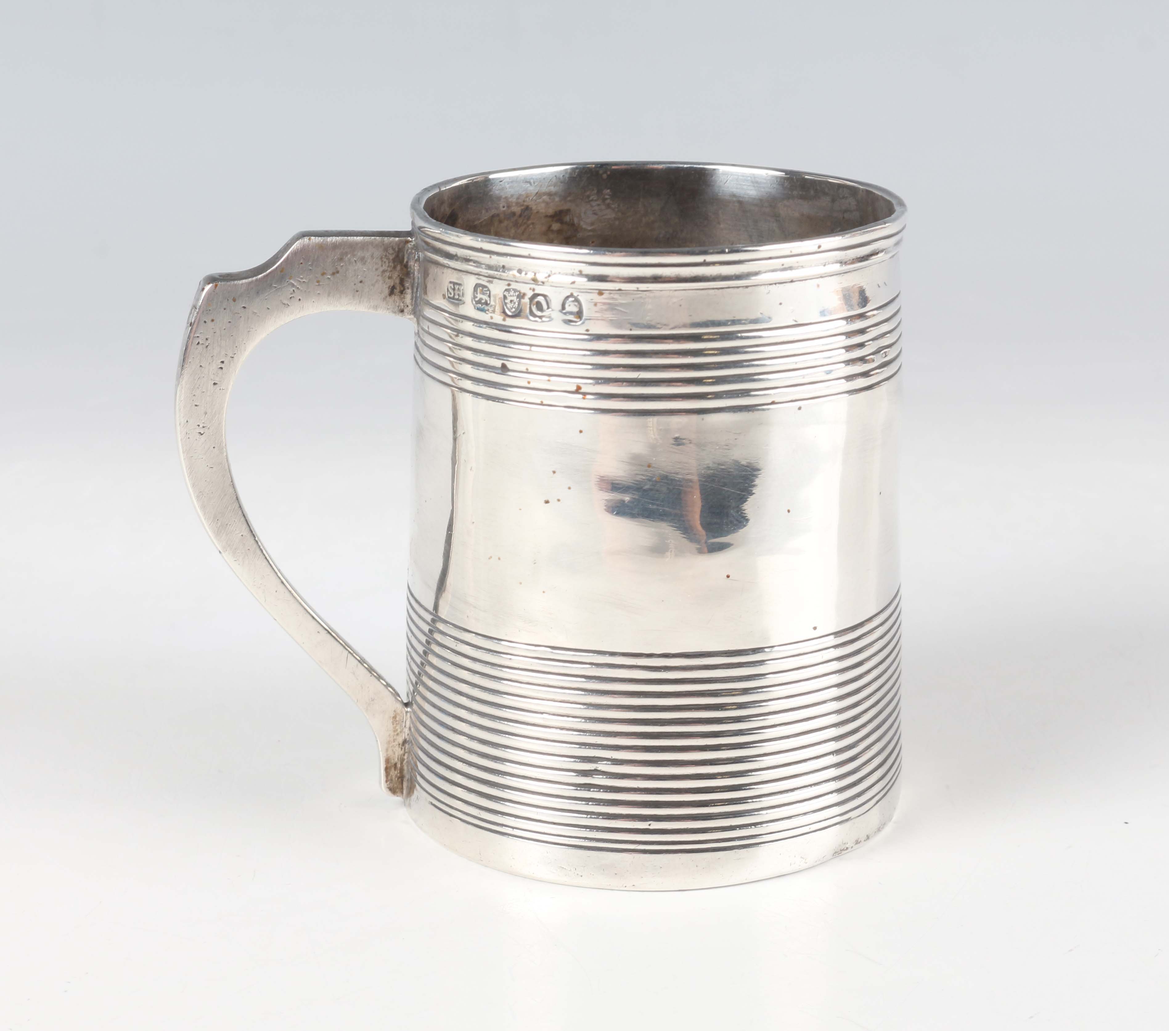 A George III silver christening tankard, the cylindrical body with two horizontally ribbed bands, London 1811 by Solomon Hougham, weight 91.4g, height 6.7cm.
