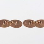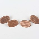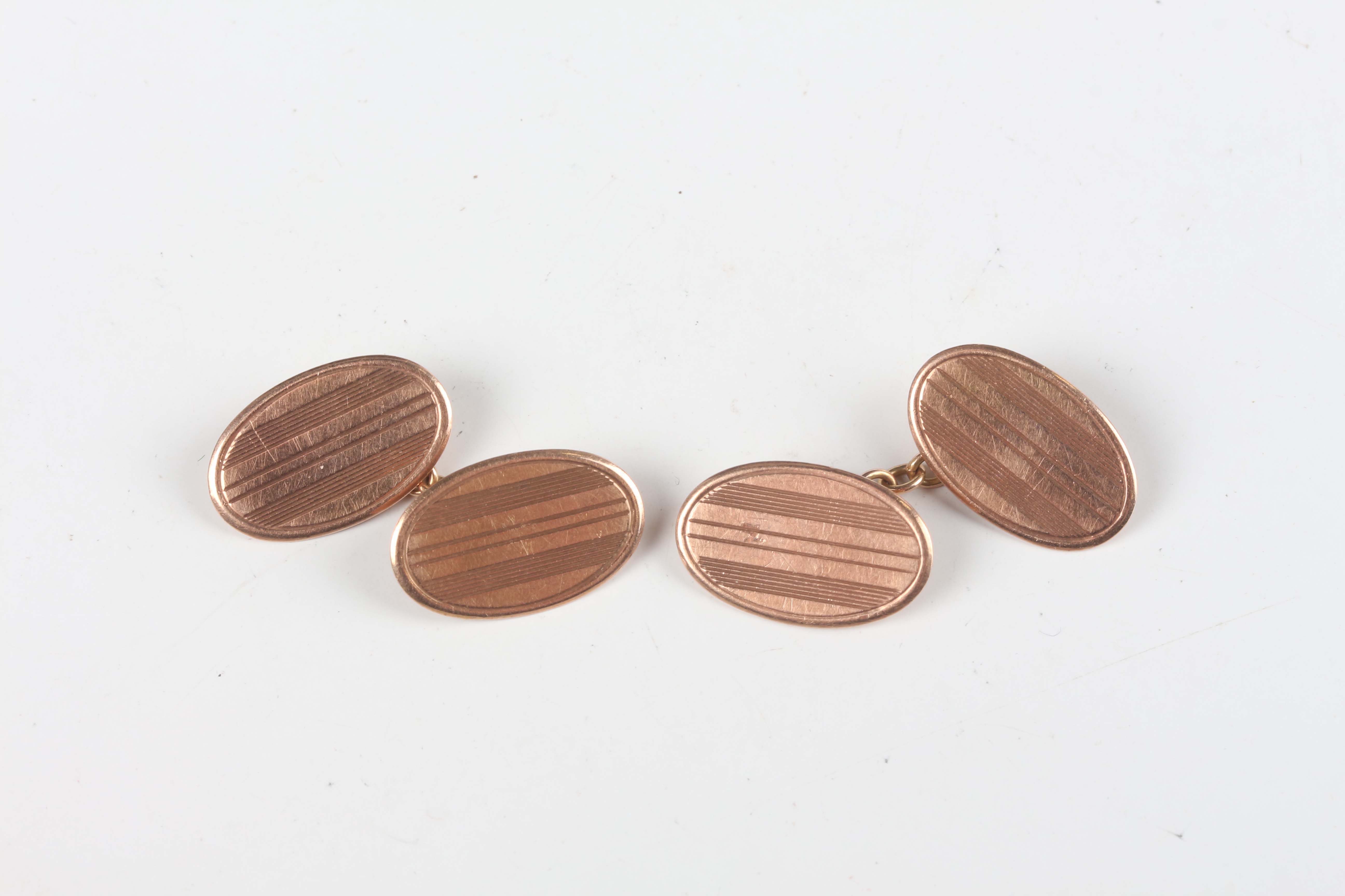 A pair of 9ct gold cufflinks, the oval backs and fronts with engine turned decoration, Birmingham 1919, total weight 4.6g.