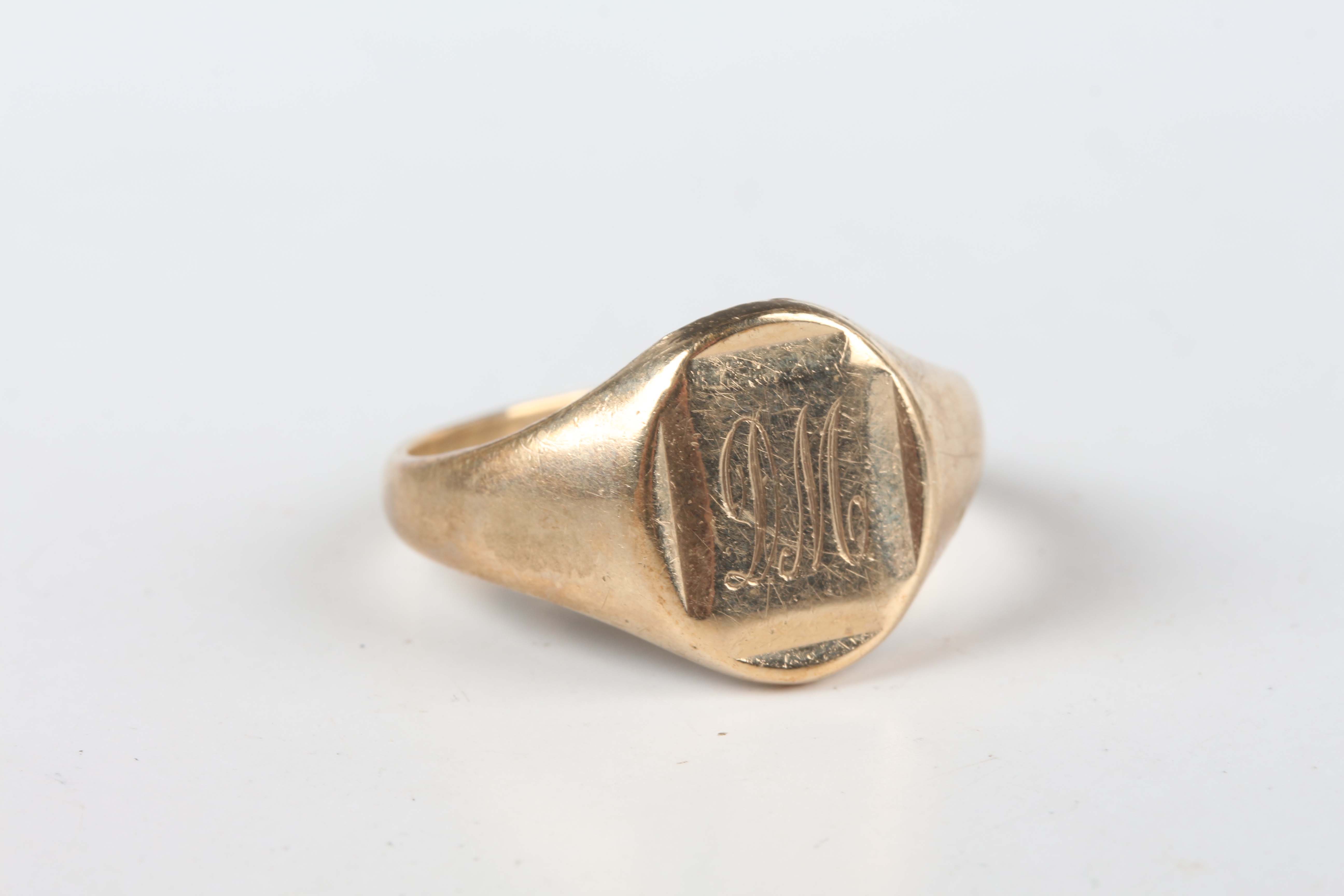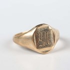 A 9ct gold signet ring, initial engraved, Sheffield 1980, weight 5.9g, ring size approx U, with a case.