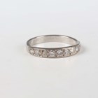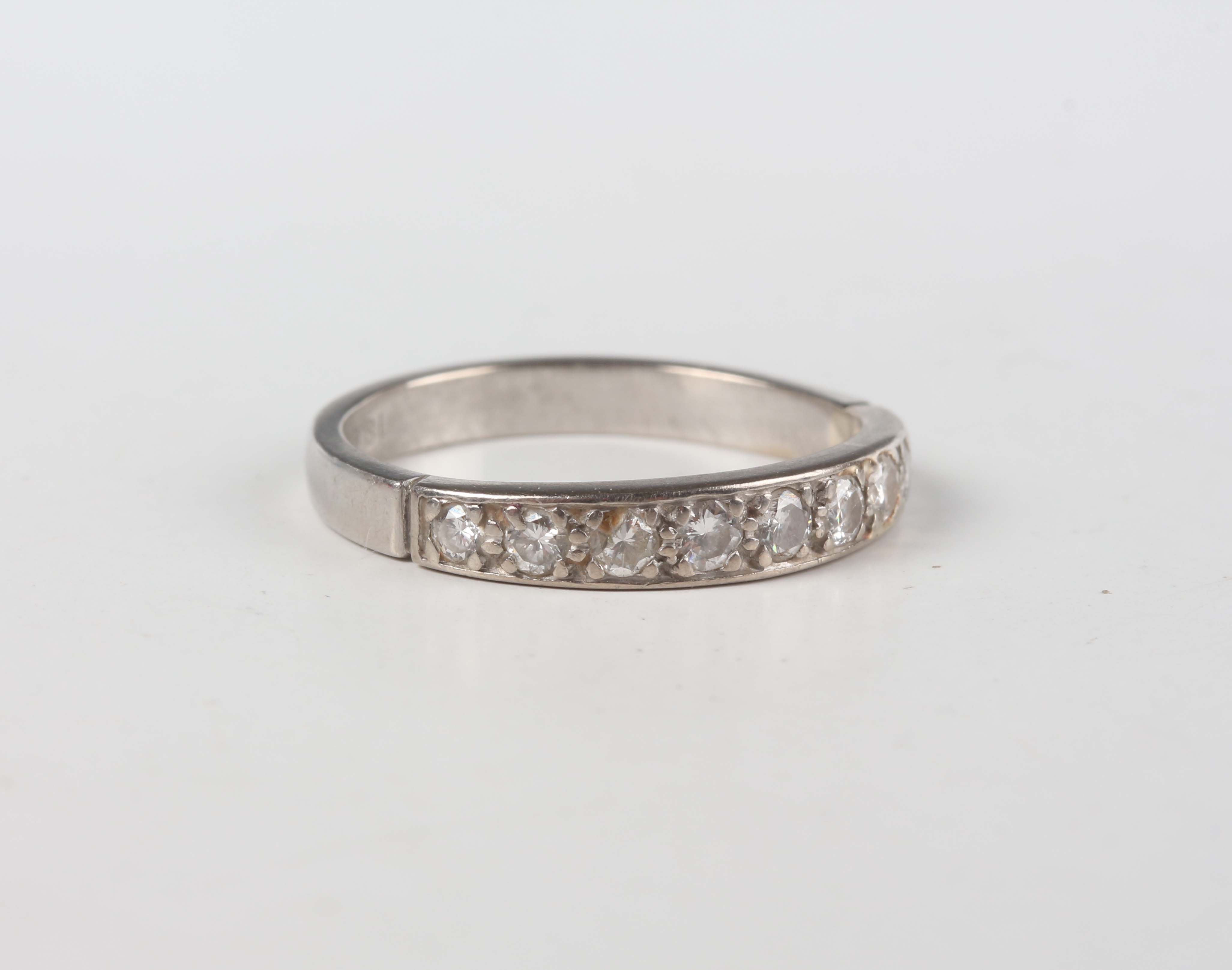 A white gold and diamond nine stone half hoop eternity ring, mounted with a row of circular cut diamonds, detailed ‘18ct’, weight 3.2g, ring size approx O.