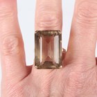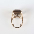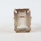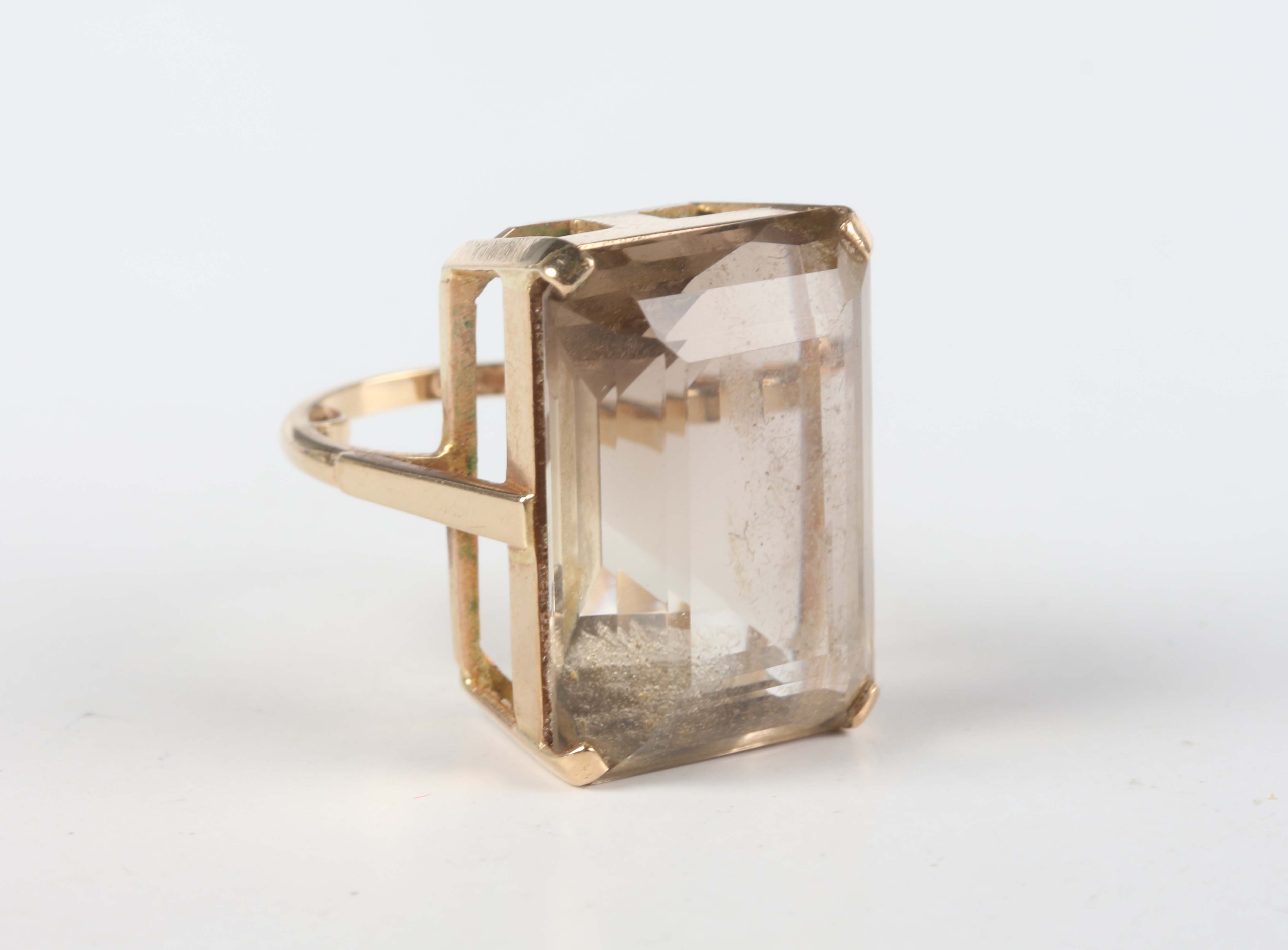 A 9ct gold ring, claw set with a large cut cornered rectangular step cut smoky quartz, weight 12.1g, ring size approx J1/2.