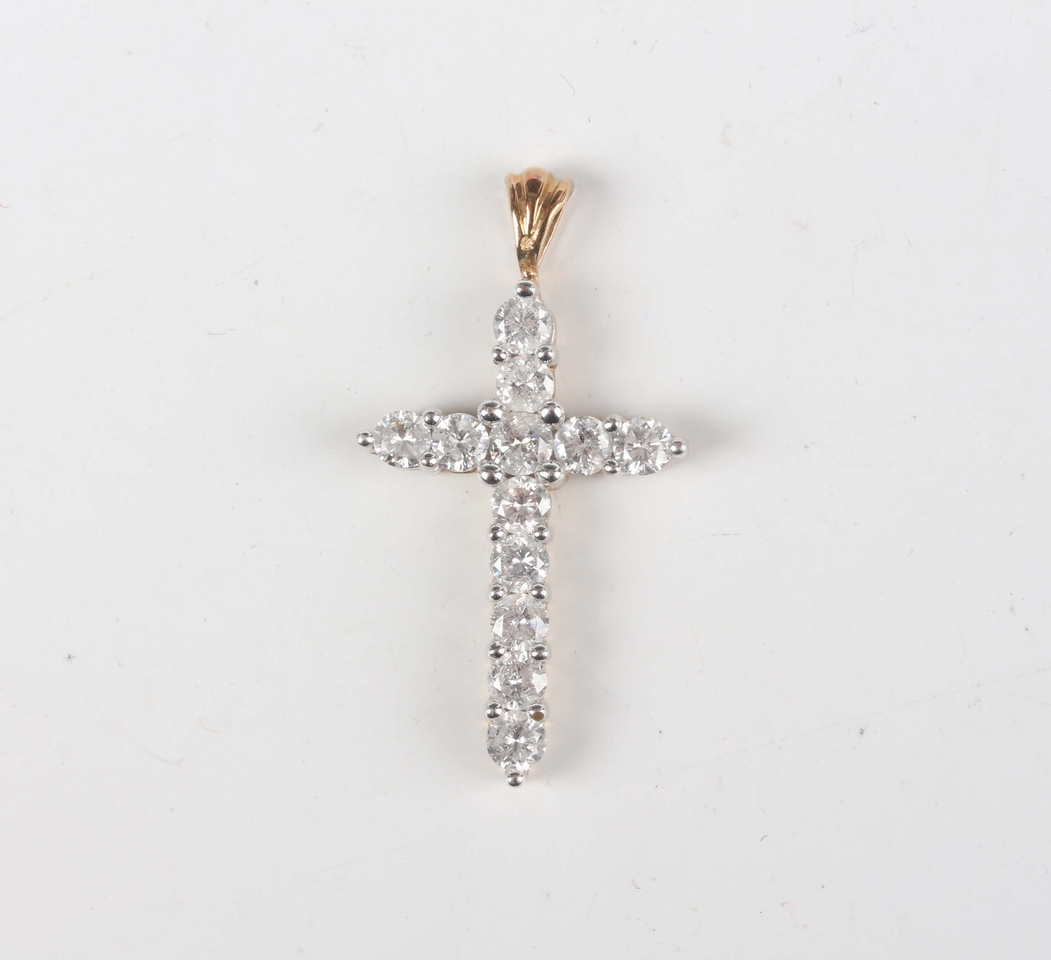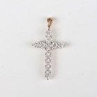 A 9ct gold and diamond set pendant cross, mounted with circular cut diamonds, weight 1.7g, length 2.9cm.