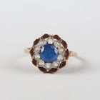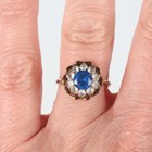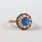 A 9ct gold and synthetic blue and colourless gem set cluster ring, weight 2.9g, ring size approx M.