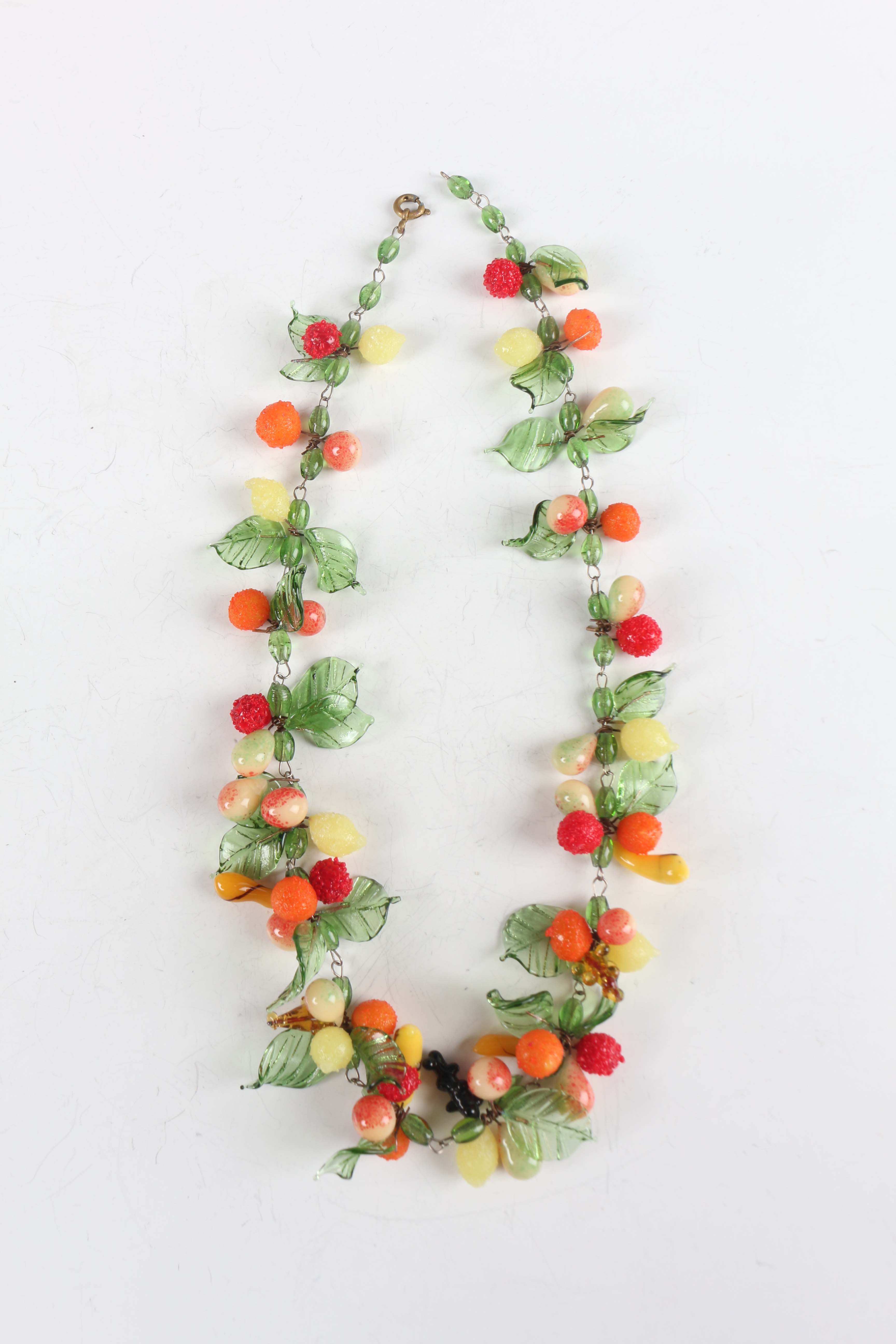 A Venetian Murano glass necklace, formed as a cluster of fruit and leaves, on a boltring clasp, length 44.5cm (minor faults).