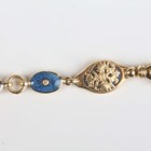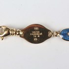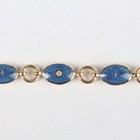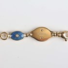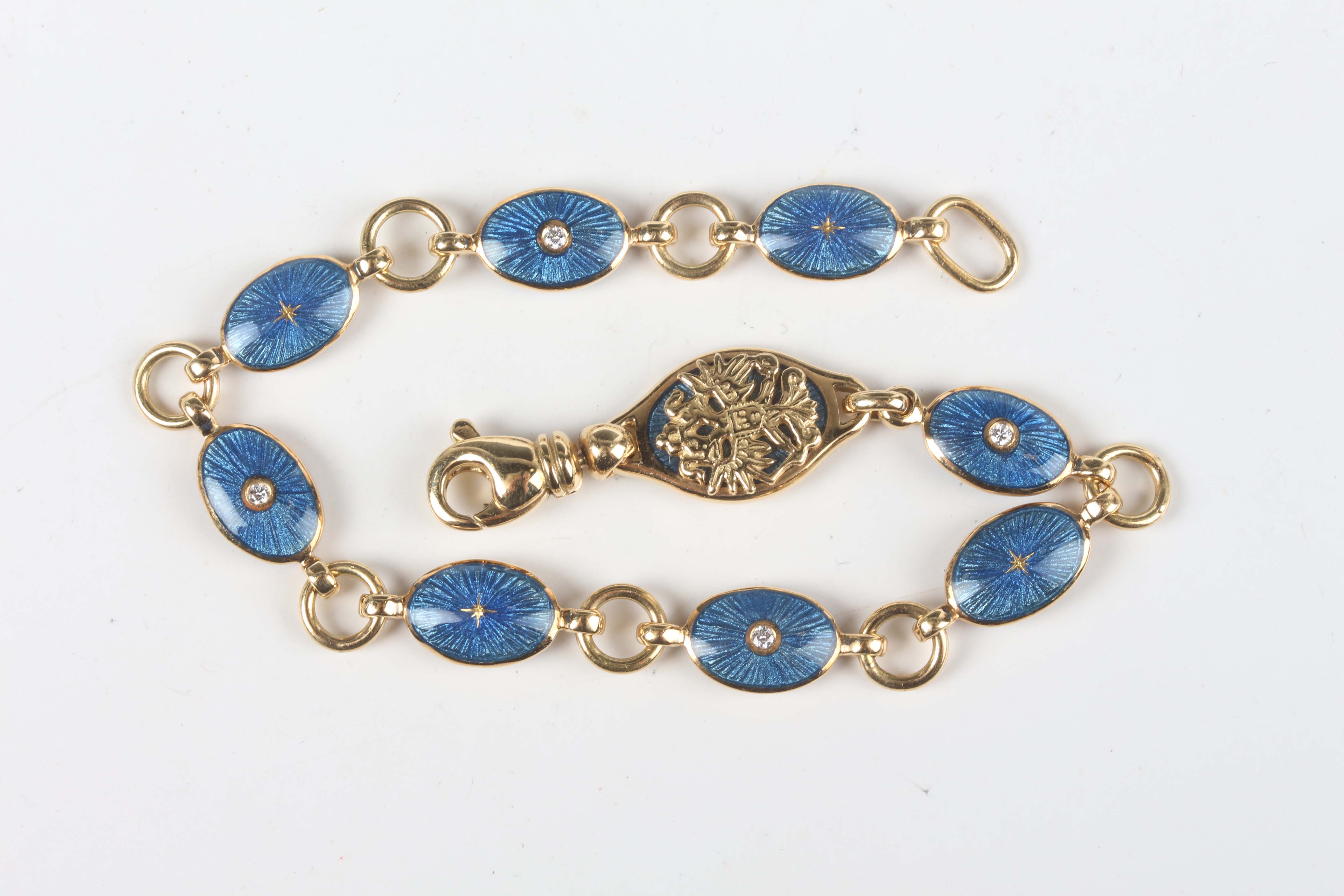 A Victor Mayer for Fabergé 18ct gold, diamond and enamelled bracelet, limited edition 288 of 500, designed as a row of eight oval blue enamelled links, including four centred by a circular cut diamond to each side, alternating with circular links, on a sprung hook shaped clasp, detailed with the Fabergé logo and 'Fabergé 288/500 750', weight 21.2g, length 18.5cm, with a certificate booklet.