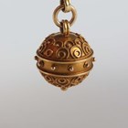 A gold pendant fob, fitted with a spherical filigree and beaded pendant and a swivel, detailed '15', weight 9.7g, length 11.5cm.