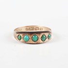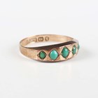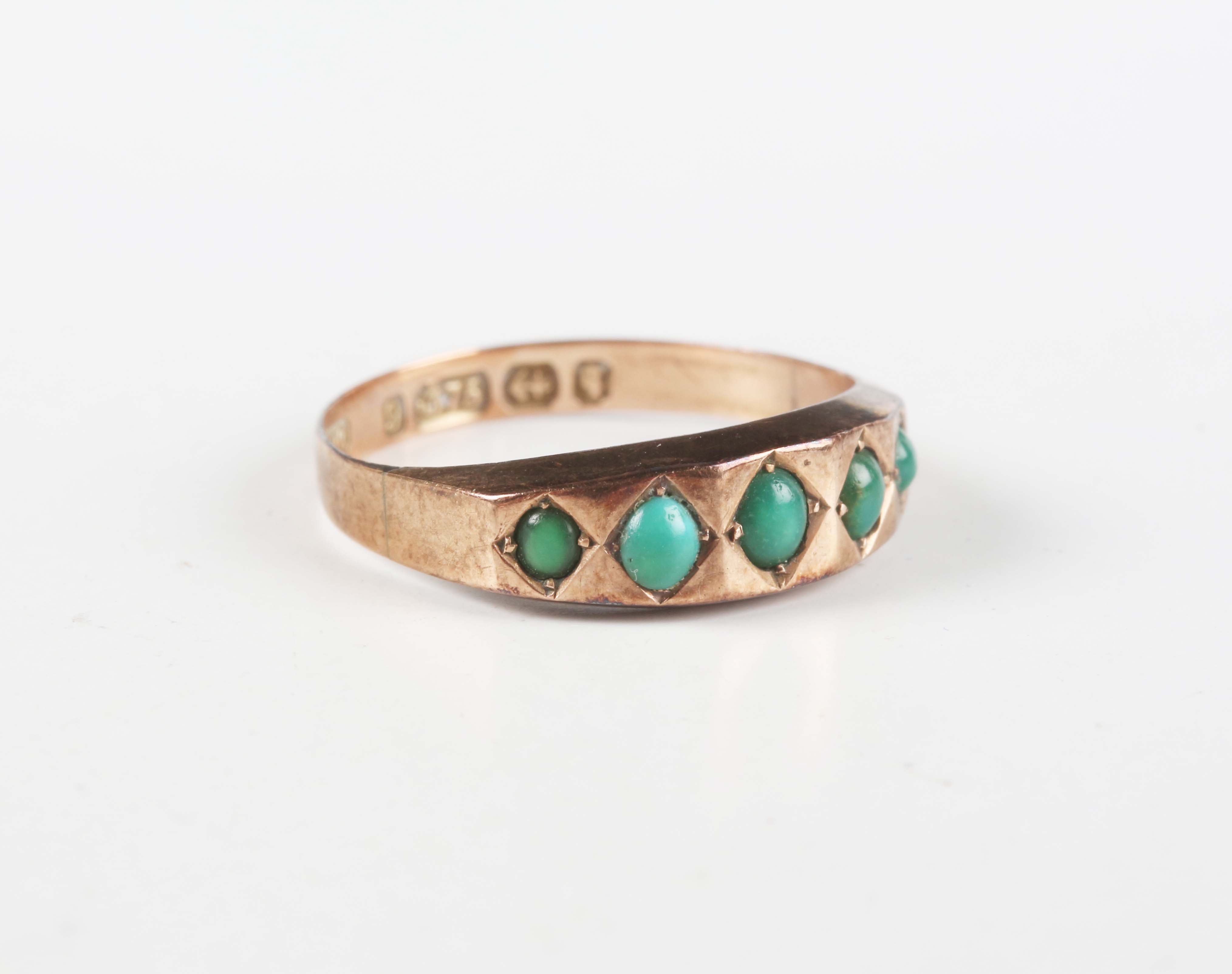 A Victorian 9ct gold and turquoise five stone ring, Birmingham 1890, weight 1.3g, ring size approx O.