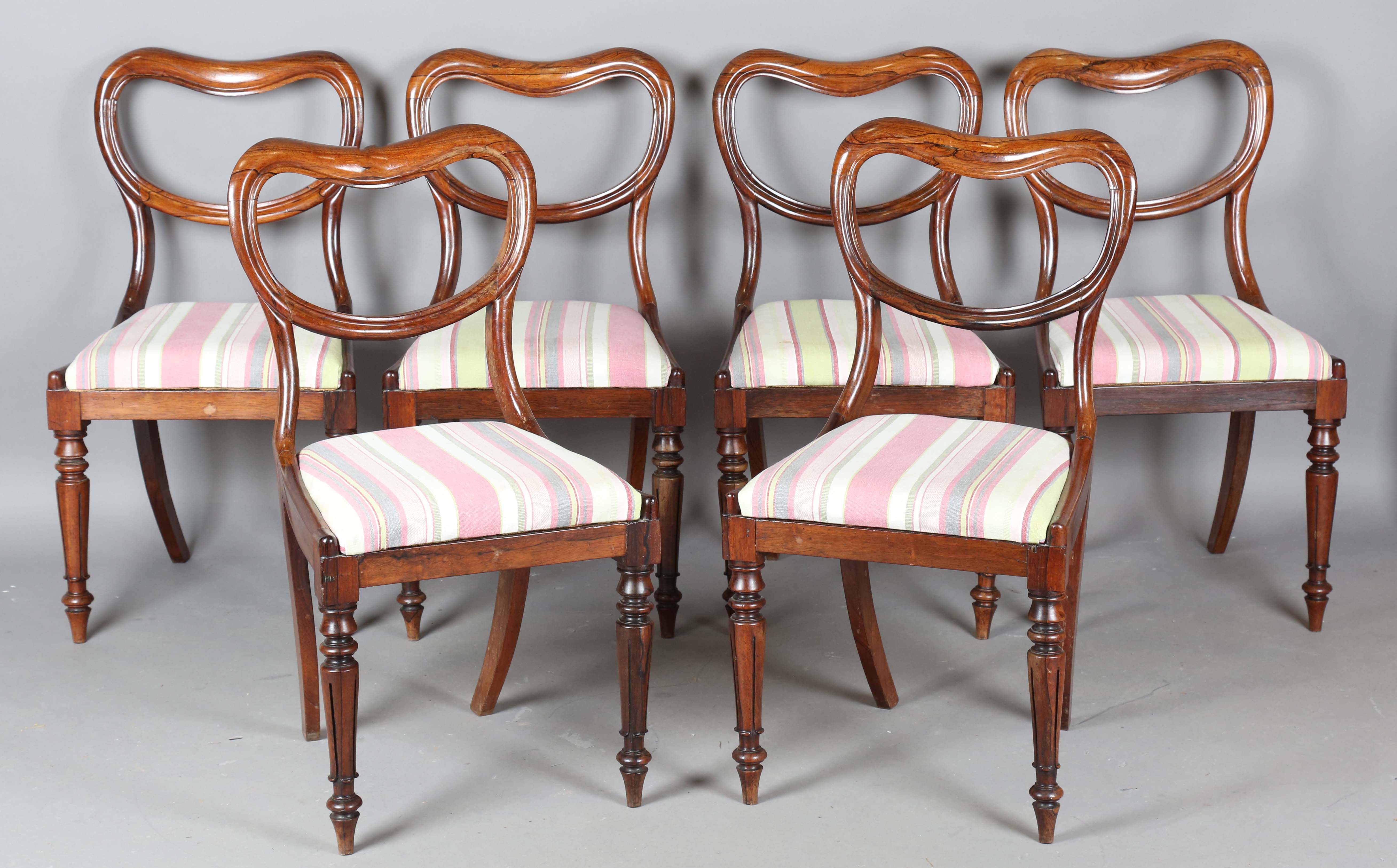 A set of six early Victorian rosewood spoon back dining chairs with drop-in seats and tulip cusp legs, height 85cm, width 46cm, depth 48cm.