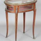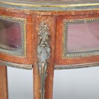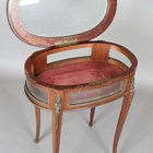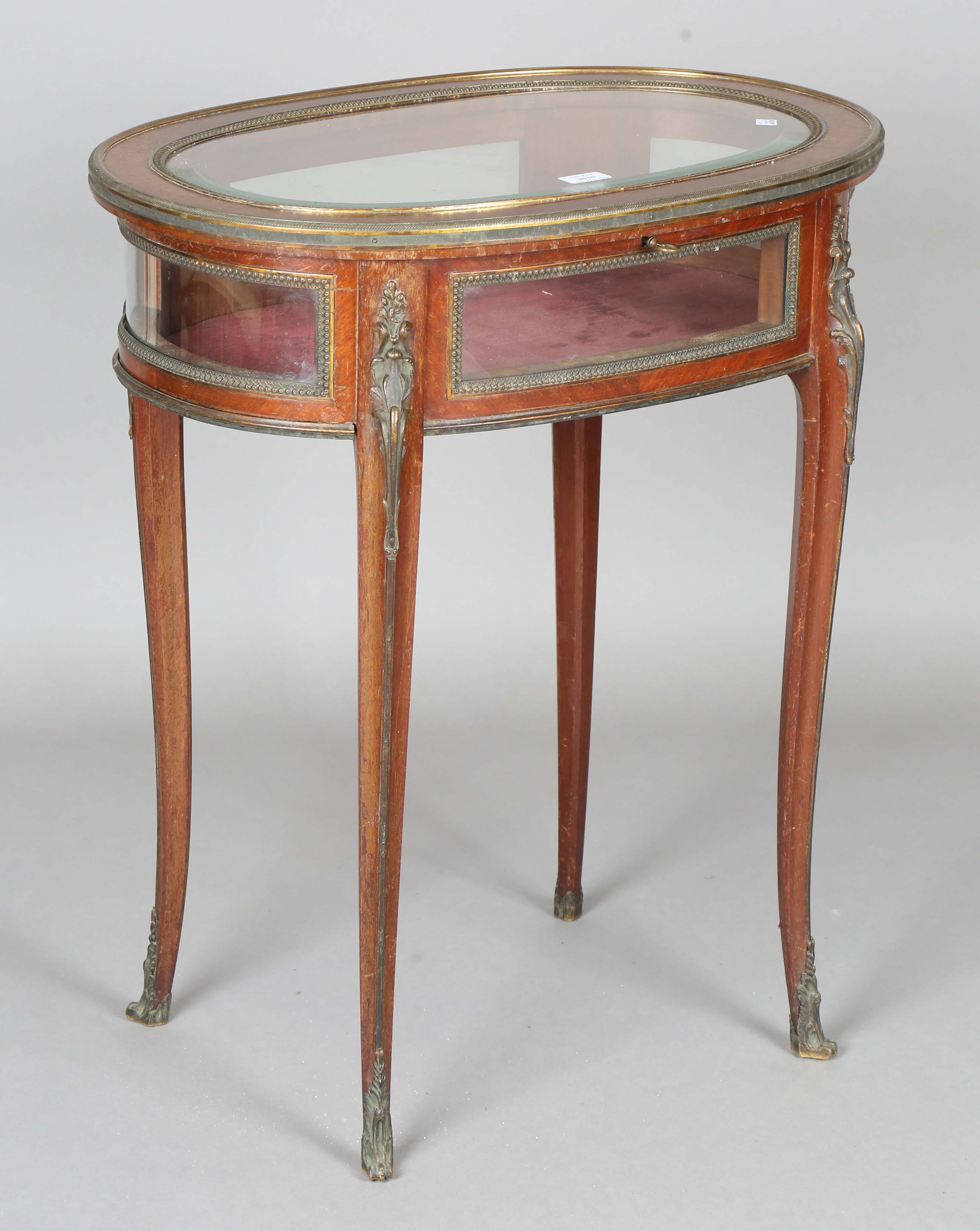An early 20th century French walnut and gilt metal mounted oval bijouterie table, raised on tapering cabriole legs, height 76cm, width 65.5cm, depth 45cm.