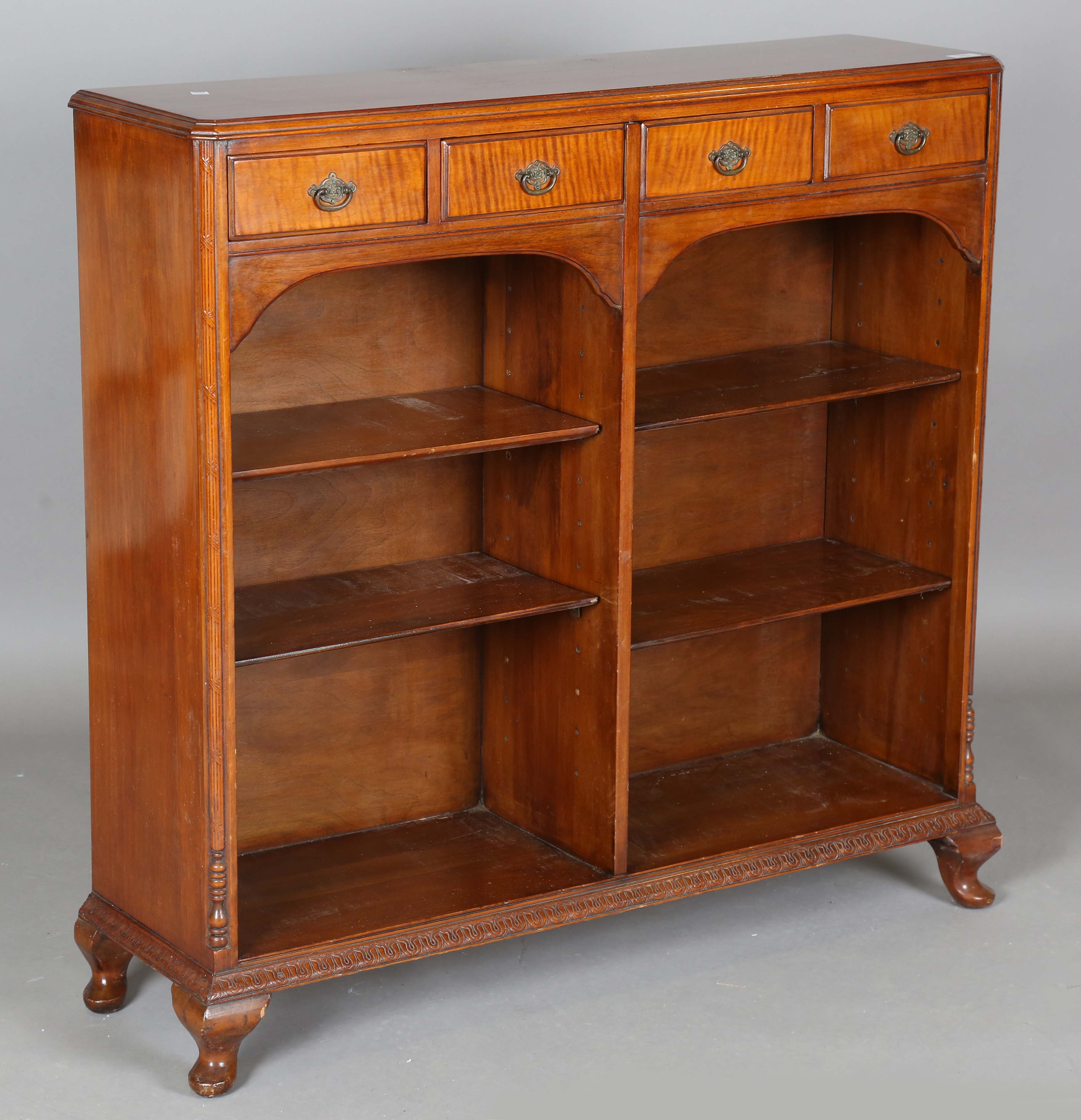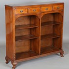 An early 20th century Neoclassical Revival walnut open bookcase, fitted with three drawers above open shelves, height 106cm, width 109cm, depth 30cm.