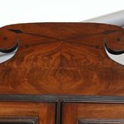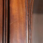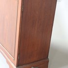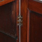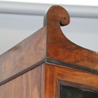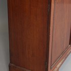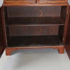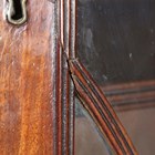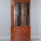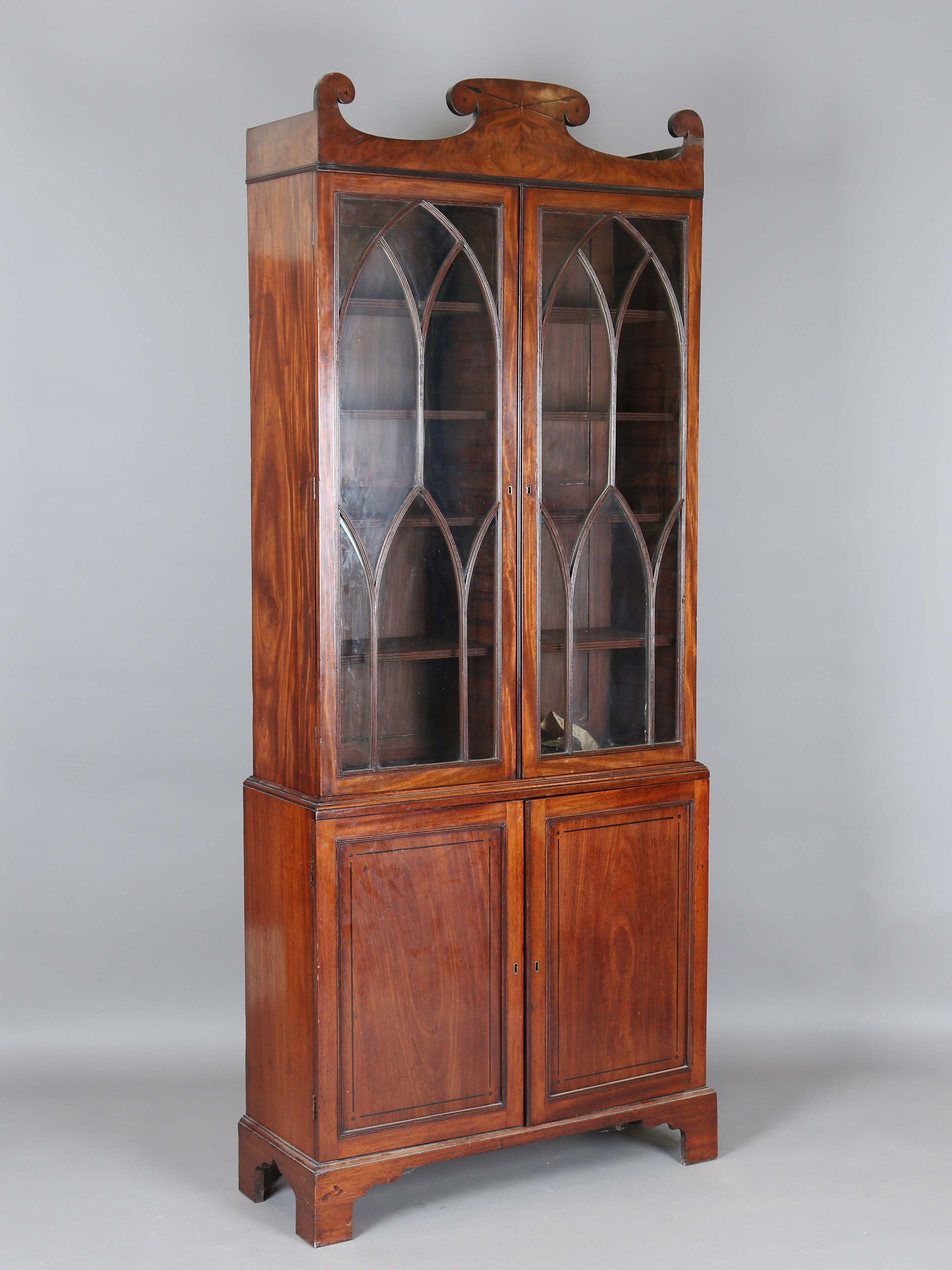 A Regency mahogany bookcase cabinet with ebony line inlay and lancet arch glazed doors, height 226cm, width 97cm, depth 34cm.