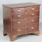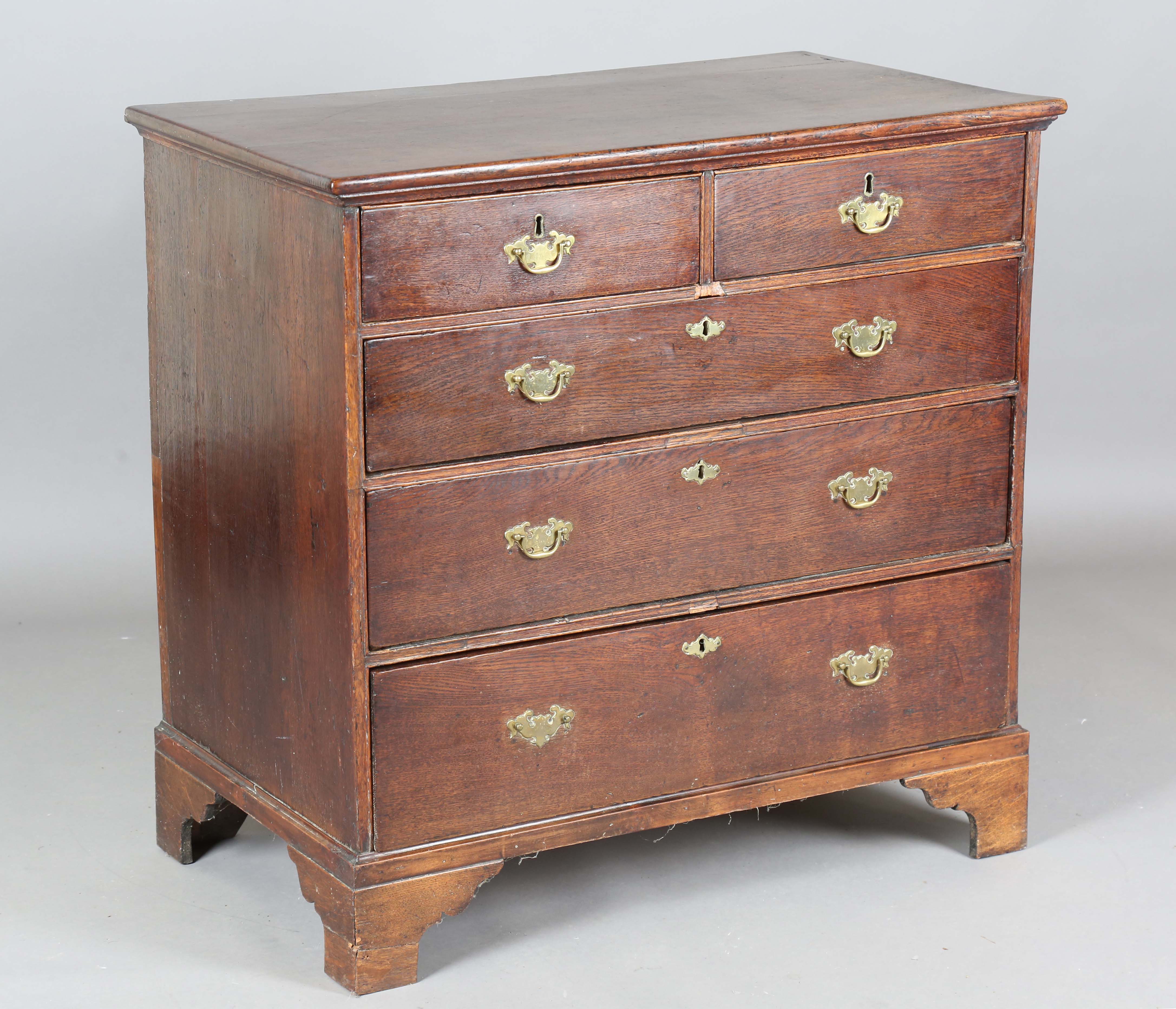 A George III provincial oak chest of drawers, height 93cm, width 96cm, depth 54cm.
