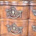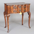 A mid-18th century Dutch walnut lowboy, the shaped top above two serpentine fronted drawers, on slender carved cabriole legs, height 71cm, width 71cm, depth 39cm.