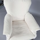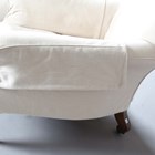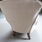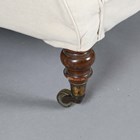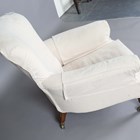A mid-Victorian scroll armchair, in the manner of Howard & Sons, fitted with loose covers and raised on turned walnut legs, bearing stamped registration number to one rear leg, height 86cm, width 80cm, depth 96cm.