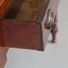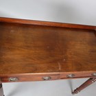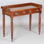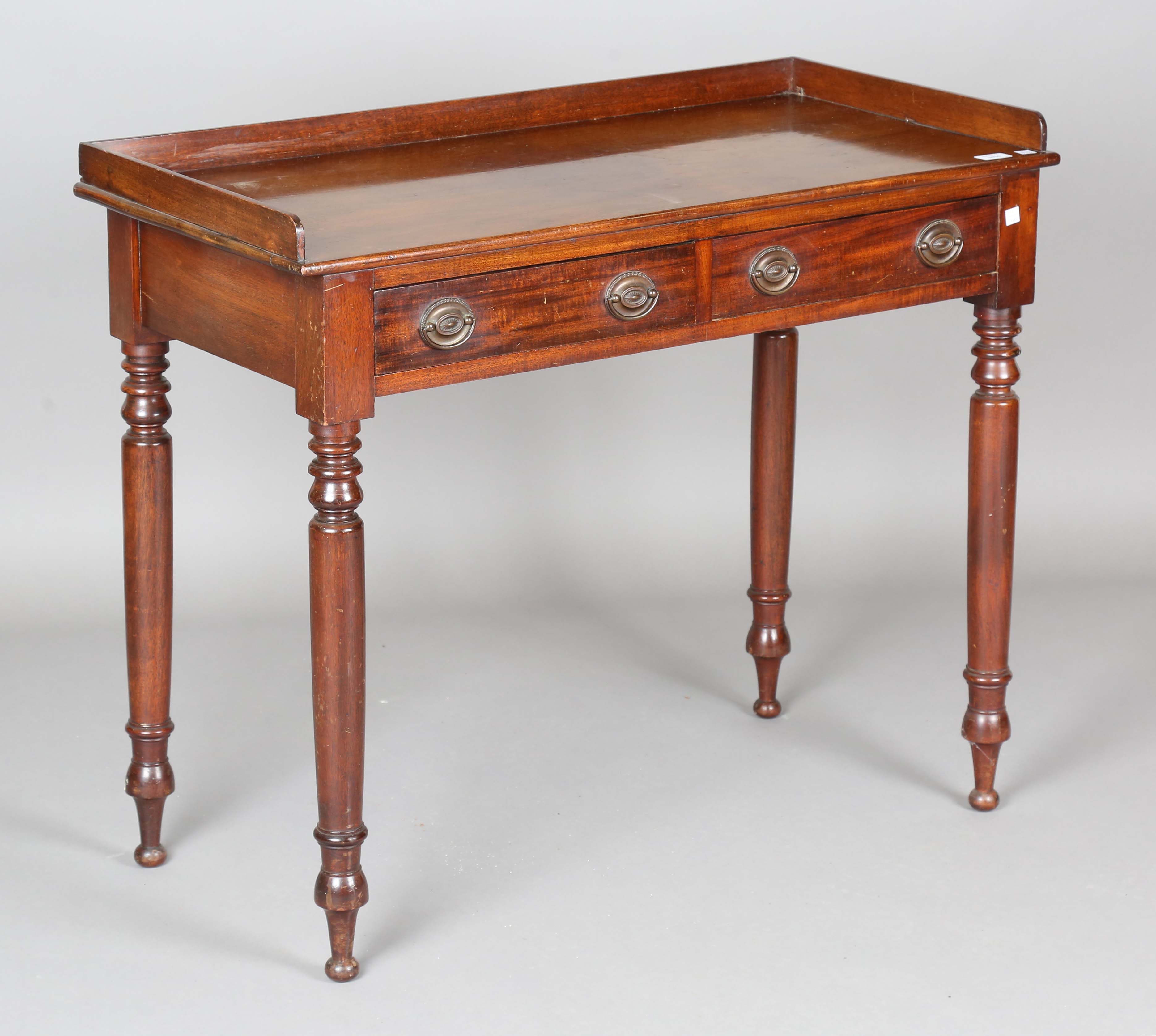 A Victorian mahogany side table, fitted with a three-quarter gallery and two drawers, on turned tapering legs, height 74cm, width 94cm, depth 45cm.