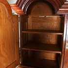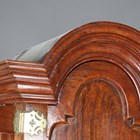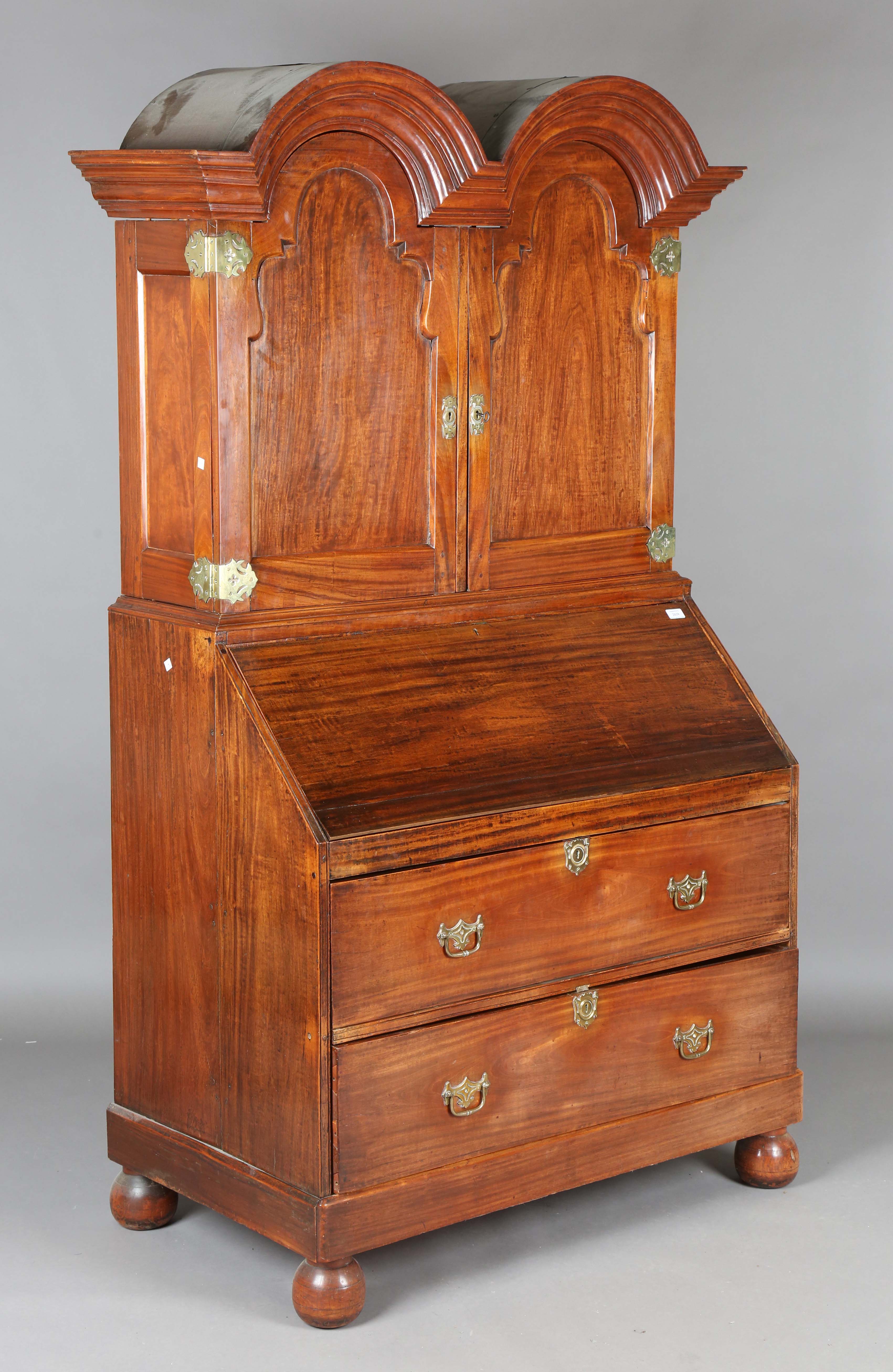 A 20th century Anglo-Chinese Queen Anne style hardwood bureau bookcase, the double-arched pediment above a pair of arched panel doors, the fall flap above two drawers, on turned bun feet, height 199cm, width 117cm, depth 62cm.