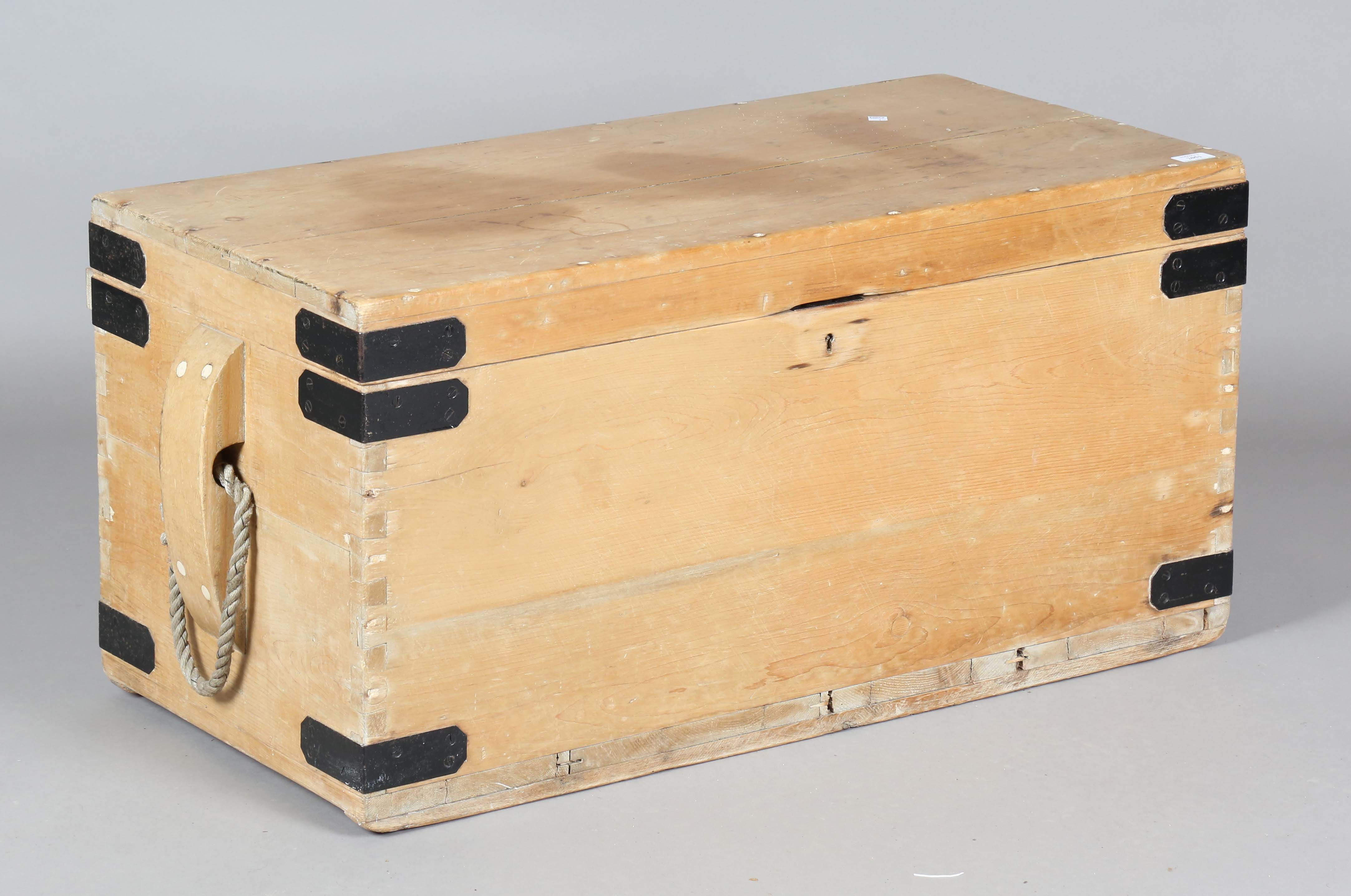 A late 19th/early 20th century pine seaman's chest, the interior with sliding tray, height 47cm, width 105cm, depth 48cm.