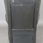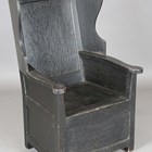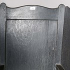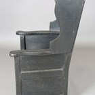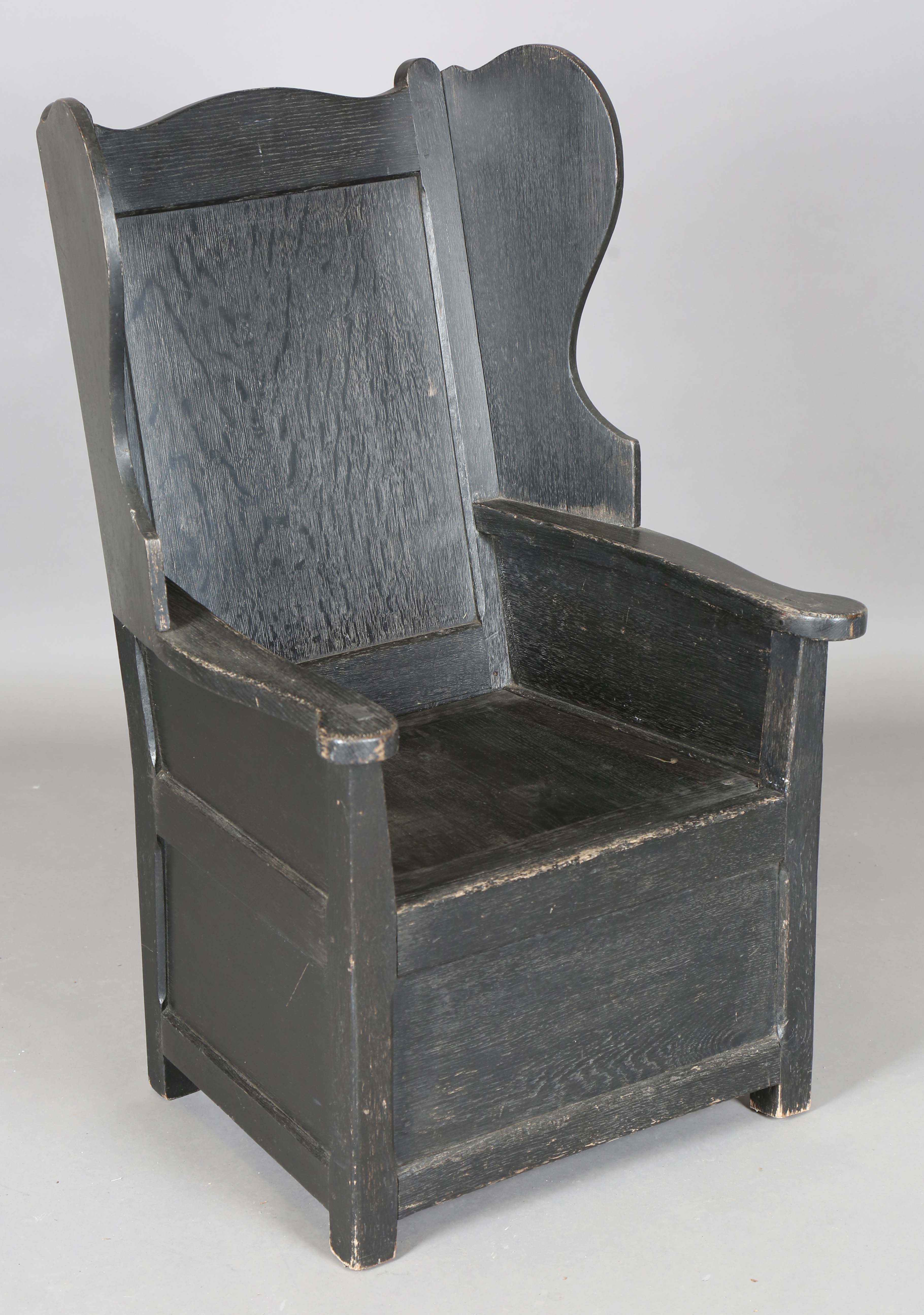 A 20th century stained oak wing back lambing style armchair, height 110cm, width 68cm, depth 66cm.