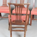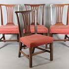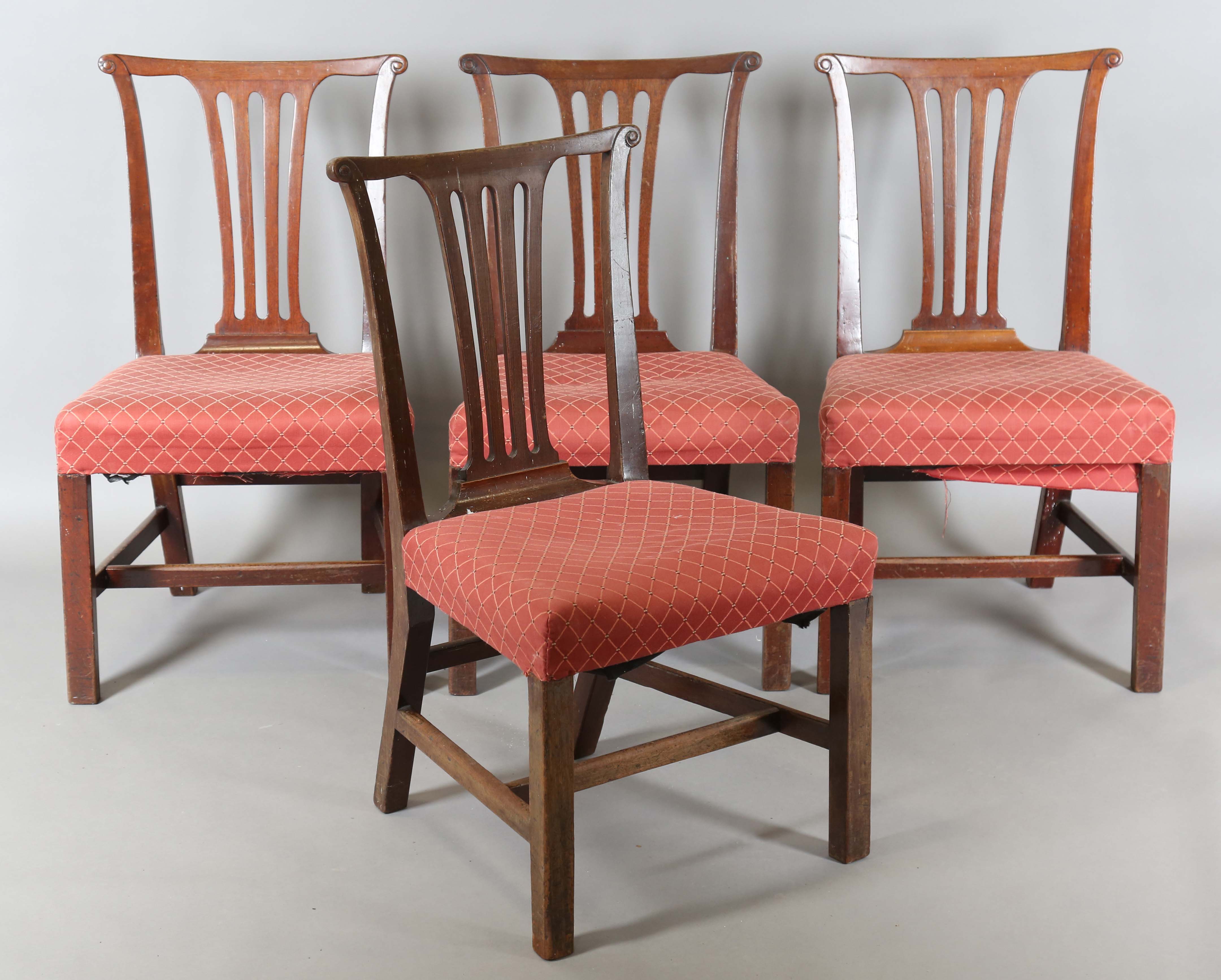 A set of four George III mahogany pierced splat back dining chairs, height 93cm, width 53cm.