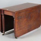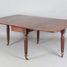 A William IV mahogany drop-flap dining table, the rectangular top on turned and reeded legs, height 70cm, extended length 174cm, depth 114cm.