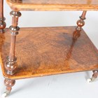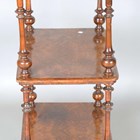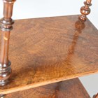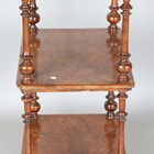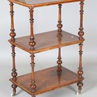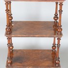 A mid-Victorian burr walnut three-tier whatnot with boxwood inlay and turned supports, height 98cm, width 60cm, depth 40cm.