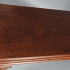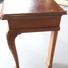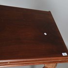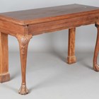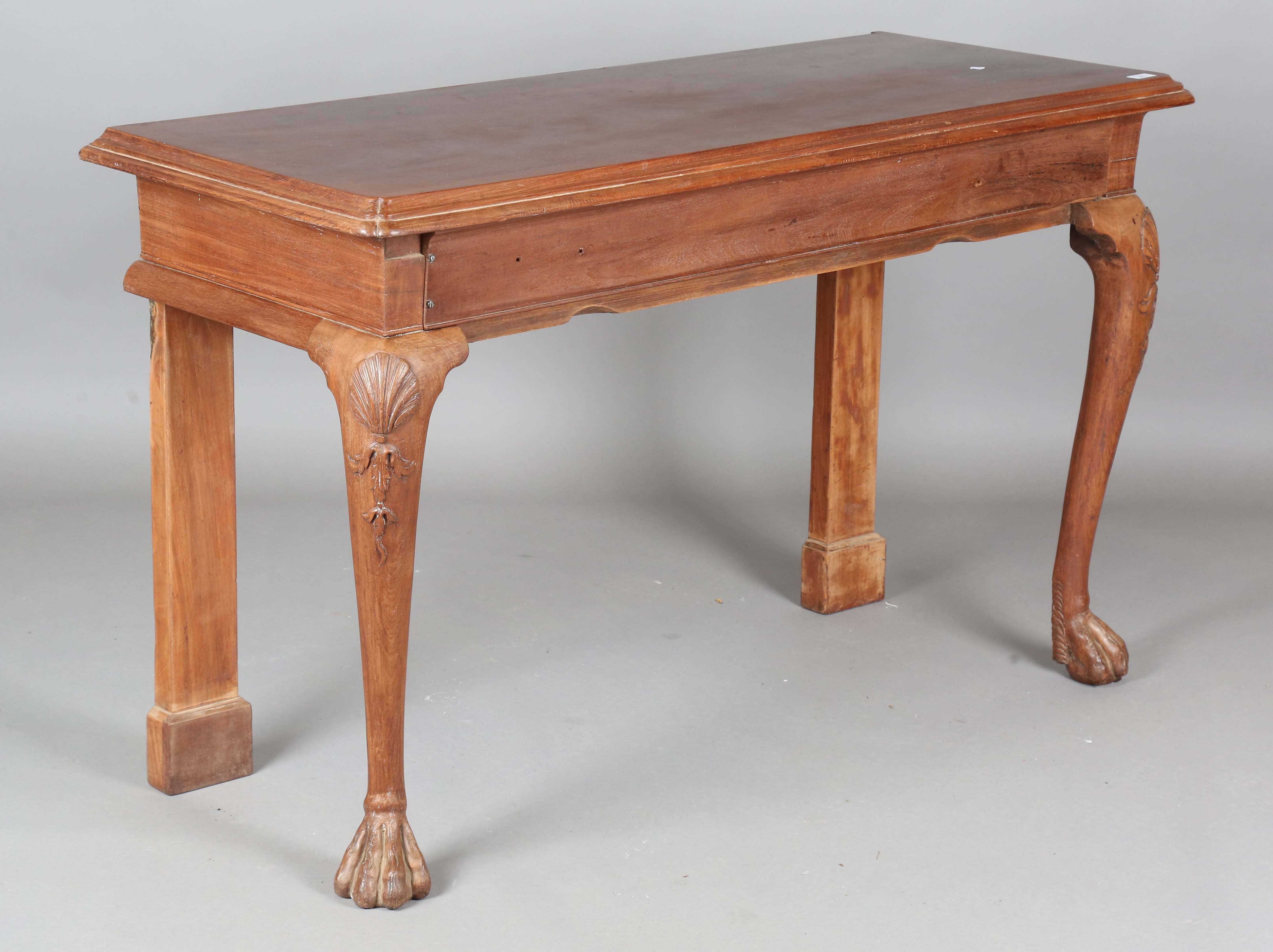 A George III Irish mahogany serving table, raised on scallop shell carved legs and hairy claw feet, height 84cm, width 138cm, depth 55.5cm (alterations).