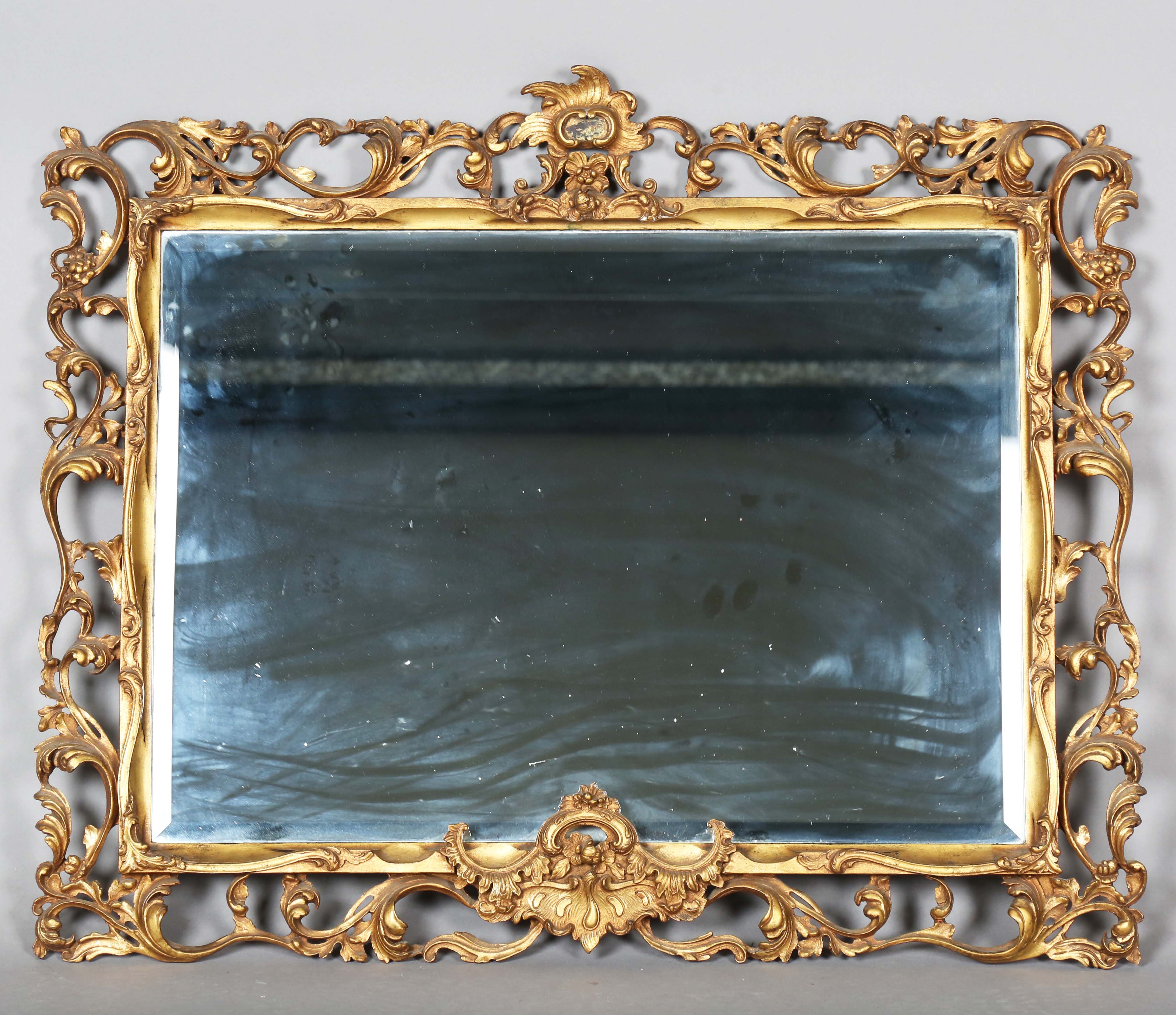 An early 20th century Continental giltwood rectangular wall mirror with a carved foliate frame, 73cm x 90cm.