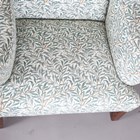 A George III oak framed wing back armchair, upholstered in modern foliate patterned fabric, on block legs, height 98cm, width 79cm, depth 75cm (cut down legs).