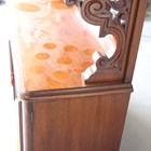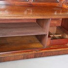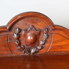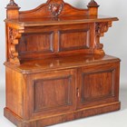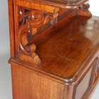 A mid-Victorian mahogany buffet, the raised back with central carved cartouche above two tiers and a double cupboard, height 141cm, width 137cm, depth 53cm.