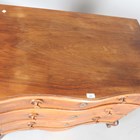 A 19th century Continental walnut serpentine fronted three-drawer commode, height 74cm, width 100cm, depth 59cm.