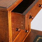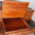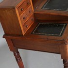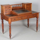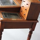 A late Victorian mahogany writing desk, fitted with a hinged slope and eight drawers, height 99cm, width 117cm, depth 61cm.