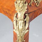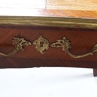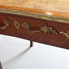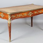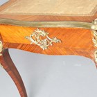 An early 20th century Rococo Revival kingwood bureau plat, the top inset with gilt-tooled leather above two drawers, on cabriole legs, height 78cm, width 150cm, depth 77cm.