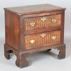 A small 18th century and later elm and oak chest of two fluted drawers, height 75cm, width 76cm, depth 46cm (alterations).