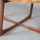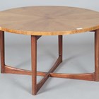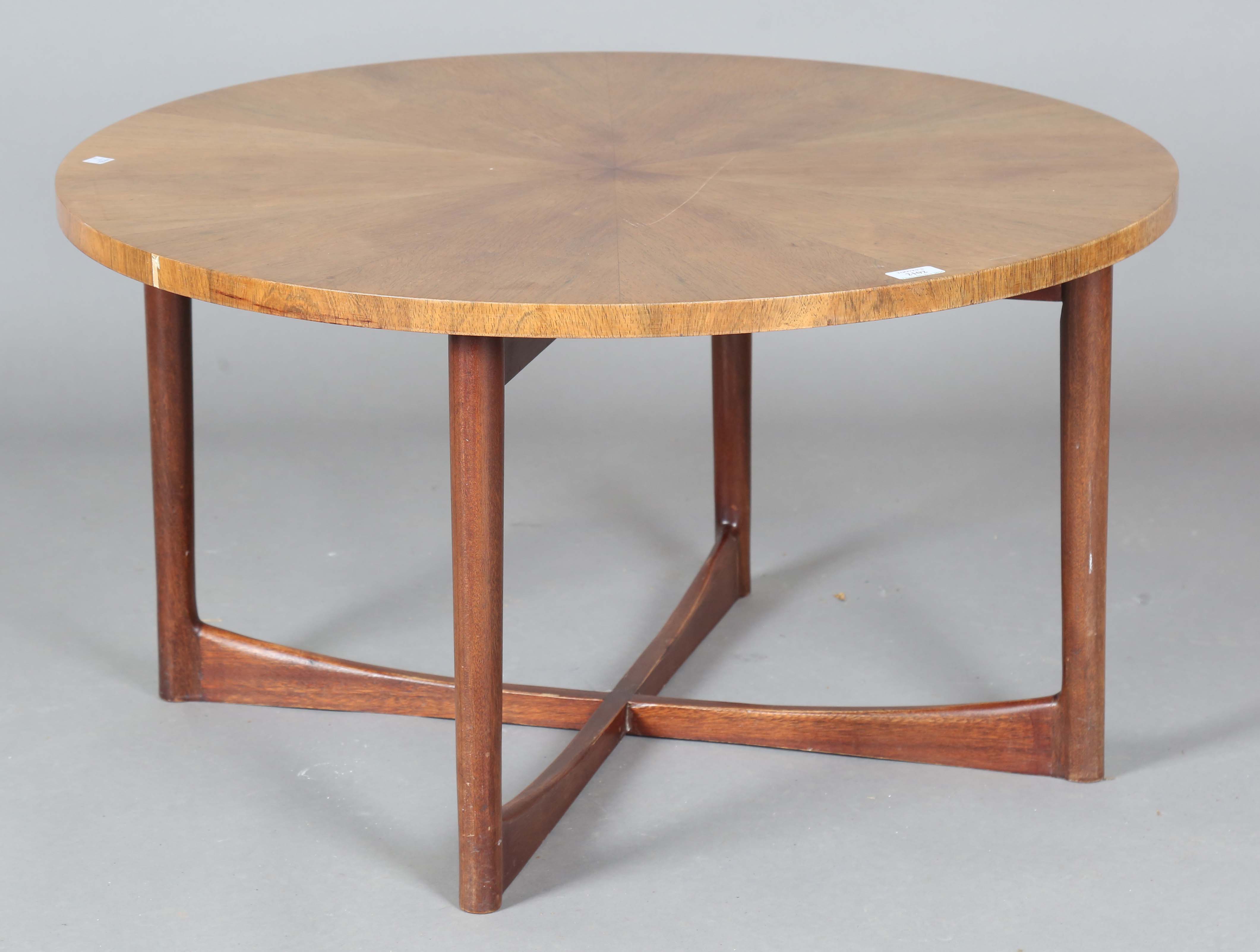 A mid-20th century walnut and teak circular coffee table by A.H. McIntosh, height 45cm, diameter 84cm.