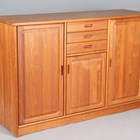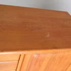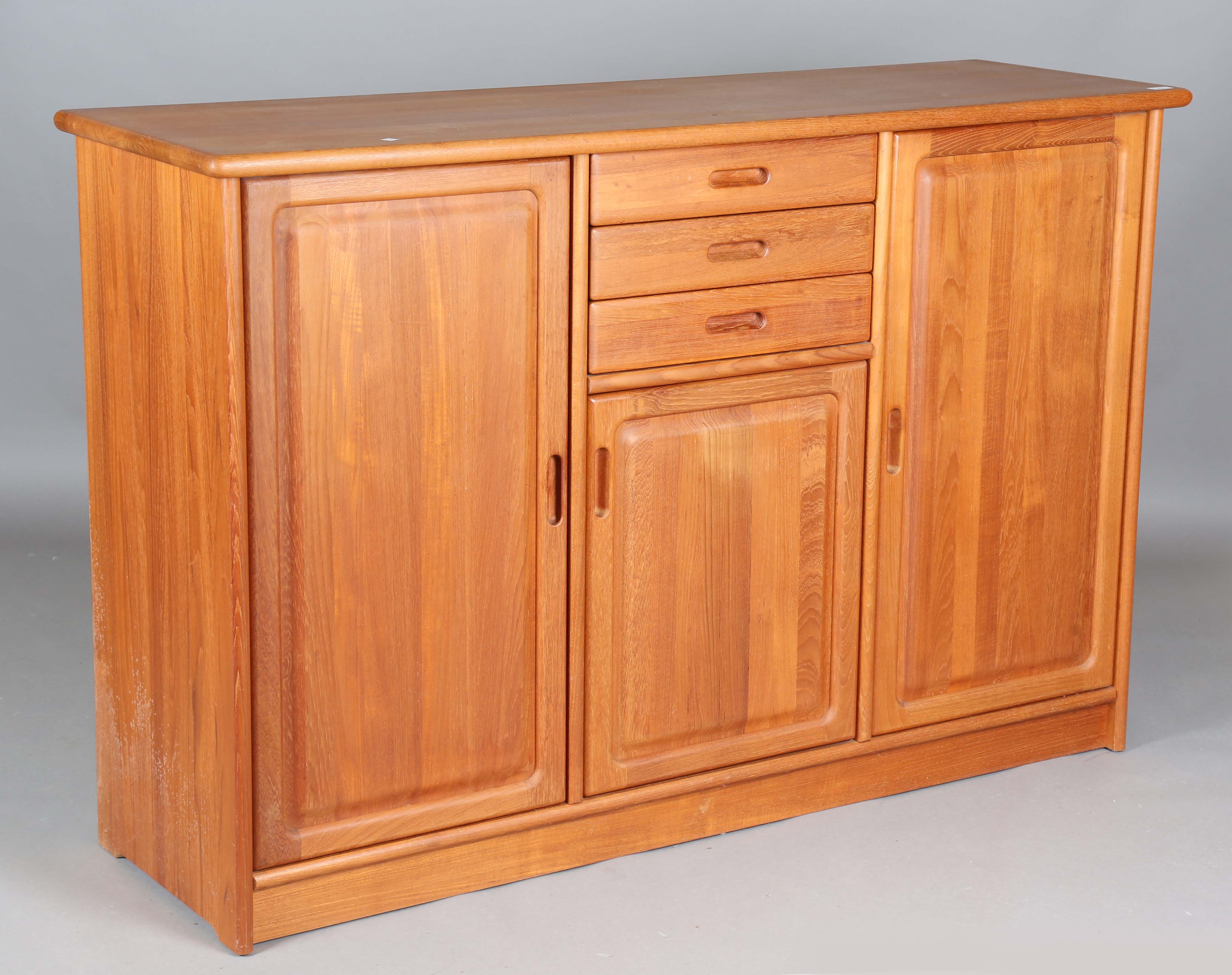 A mid/late 20th century Danish teak side cabinet by Dyrlund, fitted with three drawers and three doors, height 107cm, width 163cm, depth 50cm.