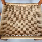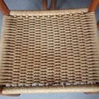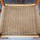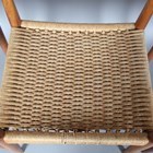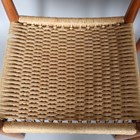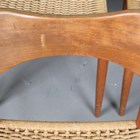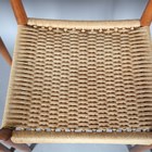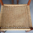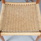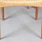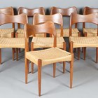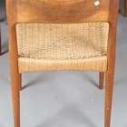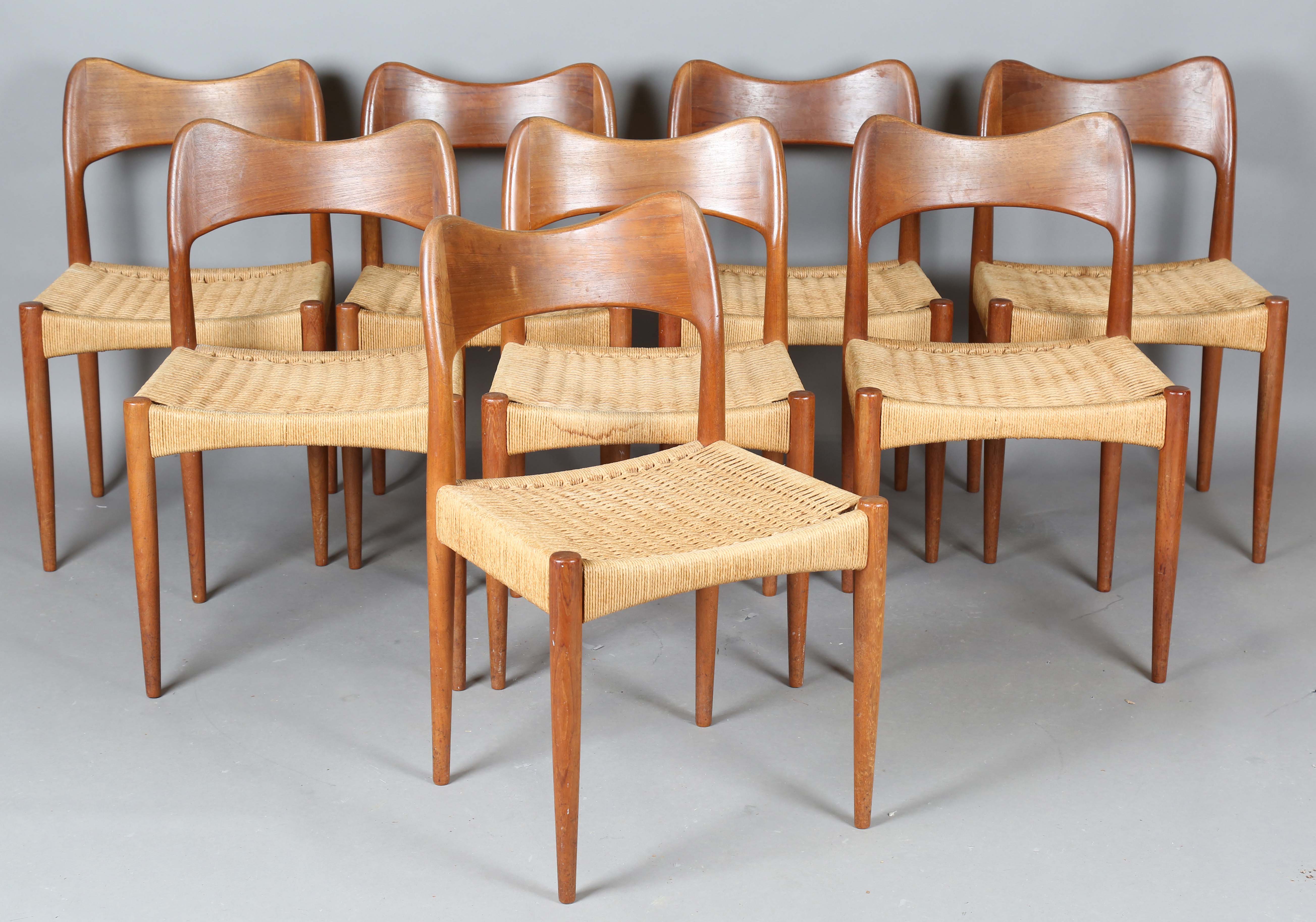 A set of eight mid-20th century Danish teak framed dining chairs, designed by Arne Hovmand Olsen, with shaped backs and woven string seats, height 79cm, width 49cm, depth 47cm.