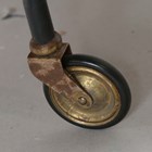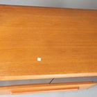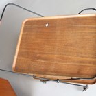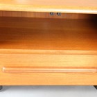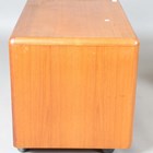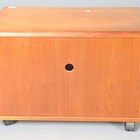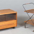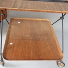 A late 20th century Danish teak television stand, height 52cm, width 77cm, depth 48cm, together with a mid-20th century wirework tea trolley, width 59cm.
